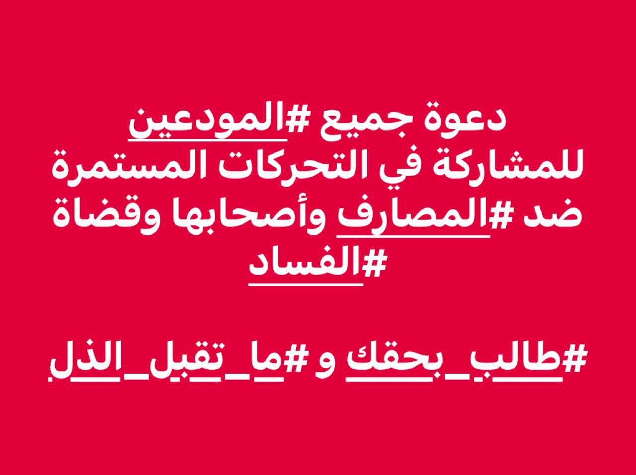 تستمر التحركات التحذيرية للمودعين اليوم من خلال مهاجمة مزيد من المصارف وبيوت أصحابها، حيث يوجّهون في سياقها أيضاً إنذاراً لكتّاب العدل الذين يقبلون إيداع المصارف شيكات لديهم وهم يعلمون بأنها لم تعد تصلح كوسيلة إيفاء، بضرورة التمنّع عن استلامها أو تعرّضهم للمداعاة قانوناً مع وضعهم على لائحة بنك أهداف المودعين المشروعة.