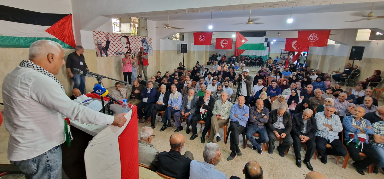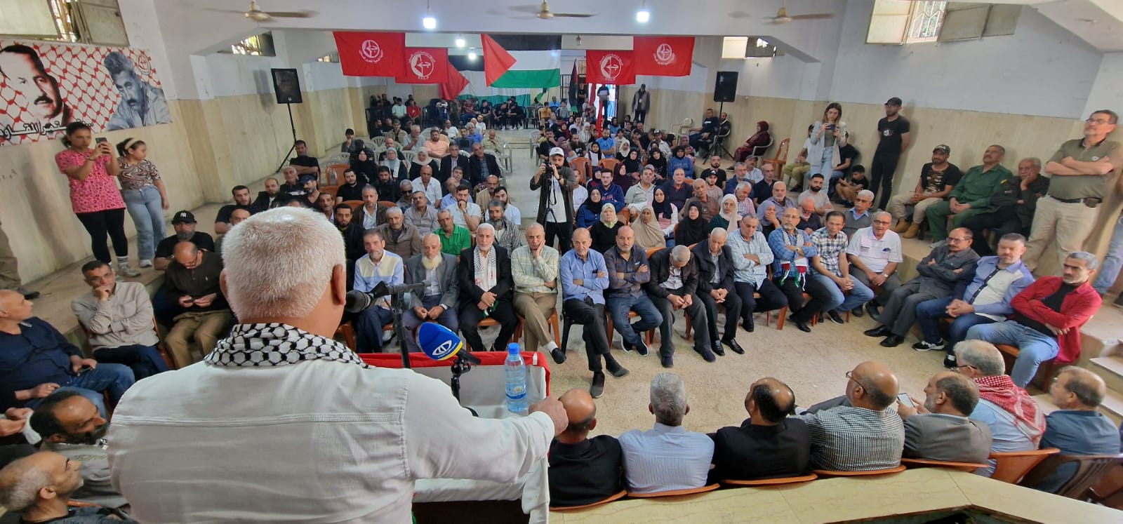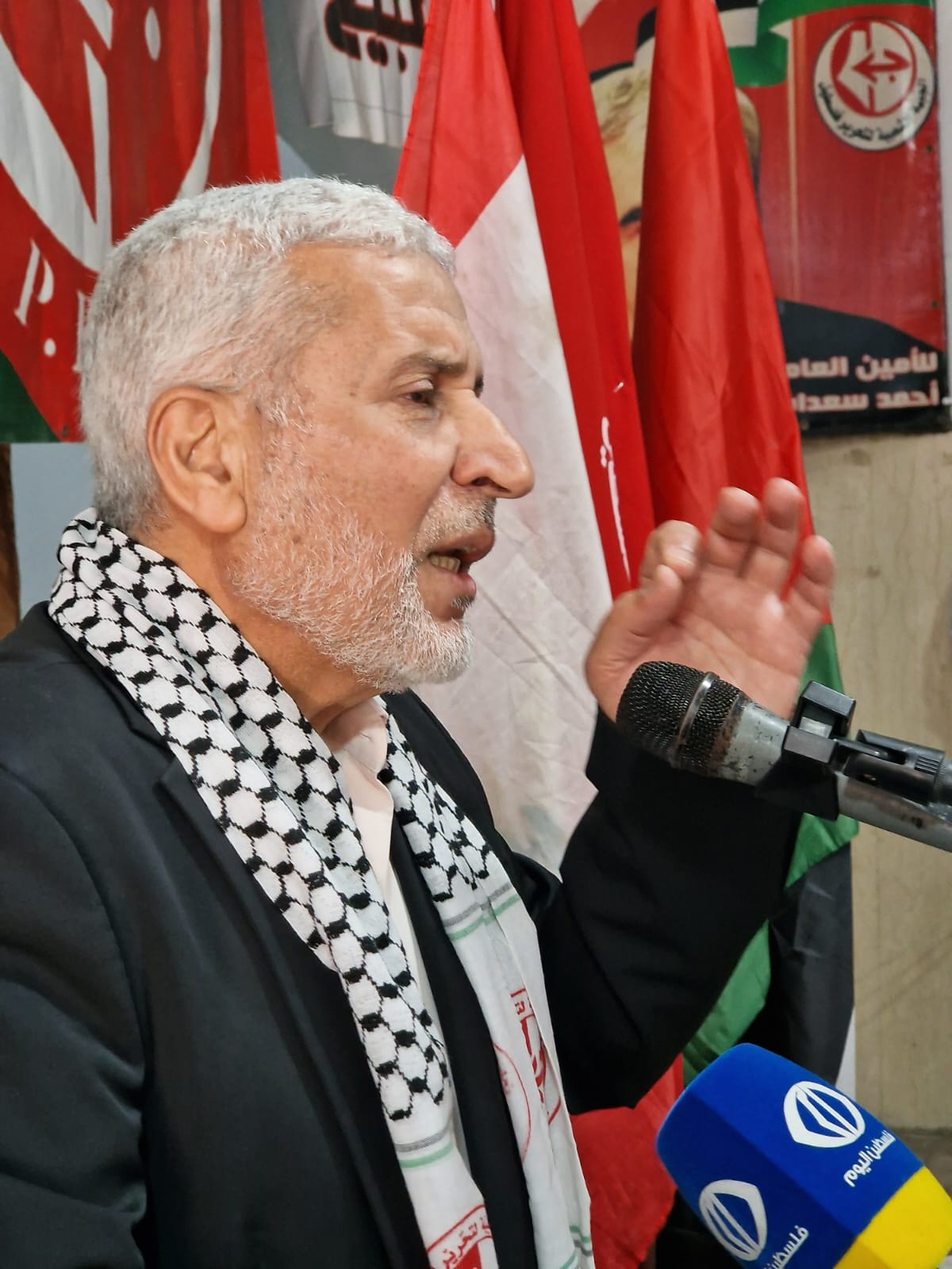 وتابع، من هنا، من عين الحلوة نبعثُ بتحيةِ شموخٍ وكبرياءَ إلى روحِ المناضلِ الوطنيِ الجبهاويِ الكبيرِ والأديبِ والمفكرِ أبو ميلاد، رفيقُ دربِ القادةِ الأبطالِ/ الأمينِ العامِ الرفيقِ أحمد سعدات، ومروان البرغوثي وحسن سلامة، ووجدي جودة، وبسام السعدي، وباسم خندقجي، وعاهد أبو غلمي، وكميل أبو حنيش وكلِ أسرَانا الأبطالِ الصامدين .