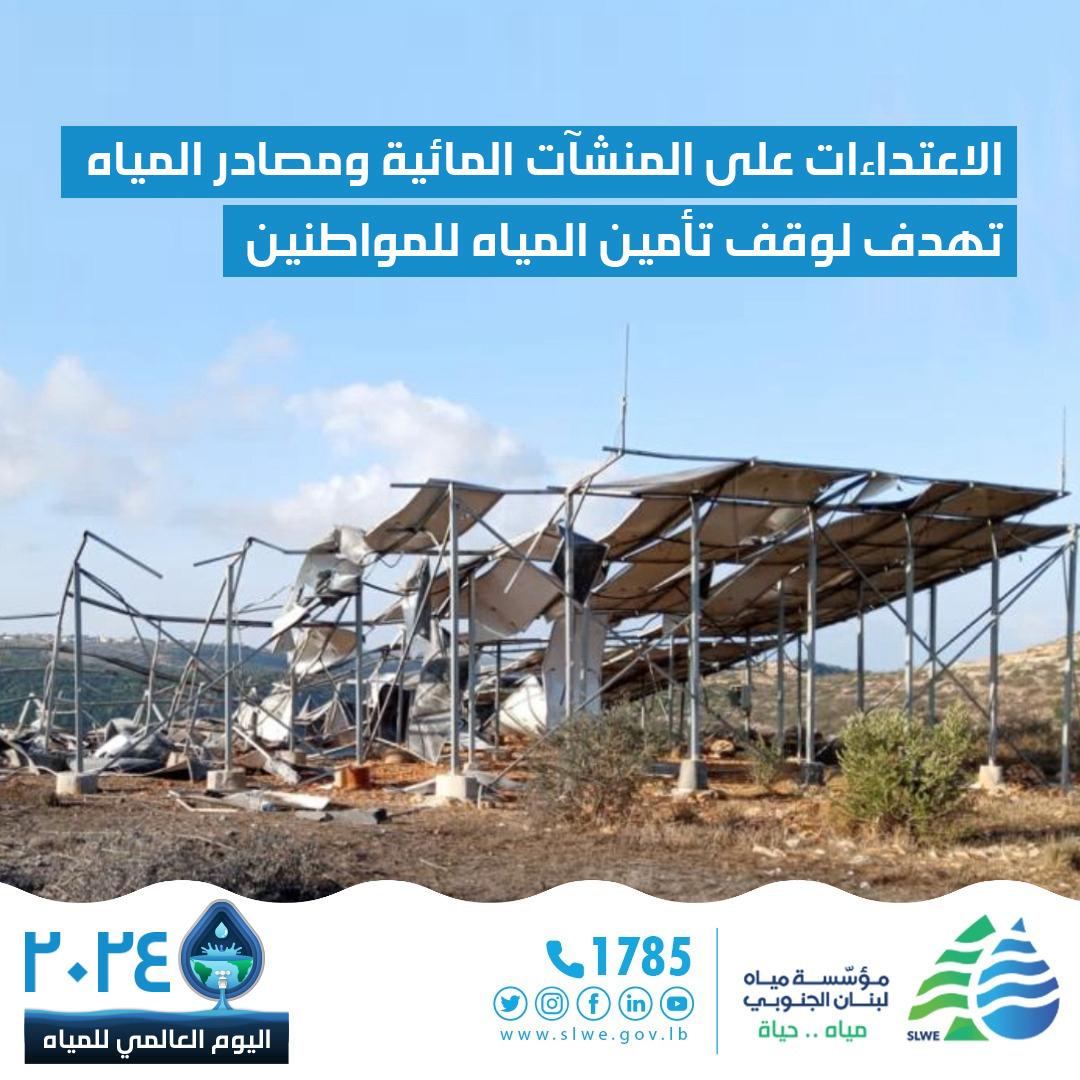 وأكّد "أن الإضرار والخسائر المادية كبيرة جداً في منشآت المؤسّسة، بسبب القصف الإسرائيلي، وبسبب كون شبكات المياه والخزانات ومضخات المياه وألواح الطاقة الشمسية في أكثر من بلدة وقرية كانت عرضة للقصف. وأمّا الخسائر المادية فلم تحدّد بعد بشكل نهائي، وهي تقدّر حتى الآن بنحو 4 ملايين دولار". ومع ذلك اعتبر أن "الوضع لا يزال تحت السيطرة، والمؤسّسة لا تزال تؤمّن المياه للقرى التي يوجد فيها الناس، والمشروع الضخم الذي تحقق قبل عام في مياه نبع الطاسة ساهم في توفير المياه بما يعادل مليون متر مكعب".