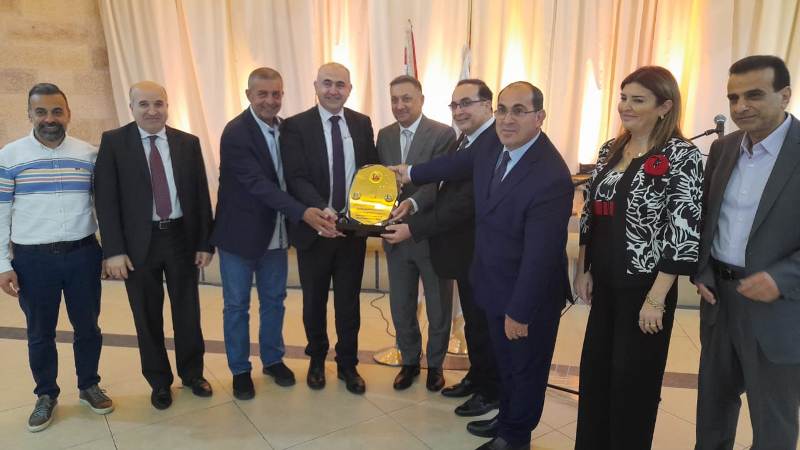 ثم قدم قبيسي وجابر والترك ورمال والموسوي درعا تقديرية لبدران، واقيم غداء تكريمي.