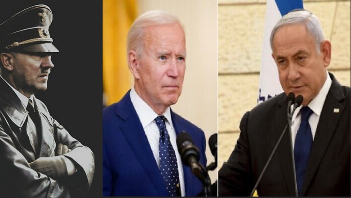 واسمحا لي أيها العزيزان ، أن أطلب منكما ، أن تشعرا بالخجل ، وأن تتوقفا عن الإستثمار في سرديات محارق الهولوكوست في معتقلات هوتشفيز ، التي صارت تمثل نقطة في بحر محارقكم وإباداتكم الجماعية من هيروشيما وناكازاكي ، إلى غوانتانامو ، إلى العراق ، إلى فيتنام ، إلى أفغانستان ، إلى ليبيا ، إلى اليمن ، إلى سوريا ، إلى فلسطين التي إرتكبتم بحق شعبها ، أفضع الجرائم بحق الإنسانية ، وما زلتم ترتكبون أعظم عمليات الإبادة لشعب أعزل ، مستضعف ، محاصر ، تمكَّن بلحمه الحي زإرادته الأسطورية ، أن يواجه ترسانتكم المتوحشة ، وان يصمد في وجهها ، محوِّلاً تجربة صمود شعب ومقاومة غزة ، إلى نموذجٍ راقٍ ومشرِّف لطلاب الحرية في العالم ، نموذج فاق تجربة صمود ومقاومة السوفييت في ستالينغراد في الحرب العالمية الثانية ، لذلك أنصحكما أيها العزيزان بالإنتحار كما فعلت أنا ، عندما أيقنت فشل رهاناتي الخائبة ، وإلا فإنكما ستواجهان مصير عزيزي بنيتو موسوليني ، الذي ظل متمسكاً بكرسيه حتى أعدمه شعبه شنقاً بأقدامه ، في الساحة التي طالما خطب فيها ، واعداً شعبه بأنه هو الذي سيعيد لهم مجد الإمبراطورية الرومانية التليدة .