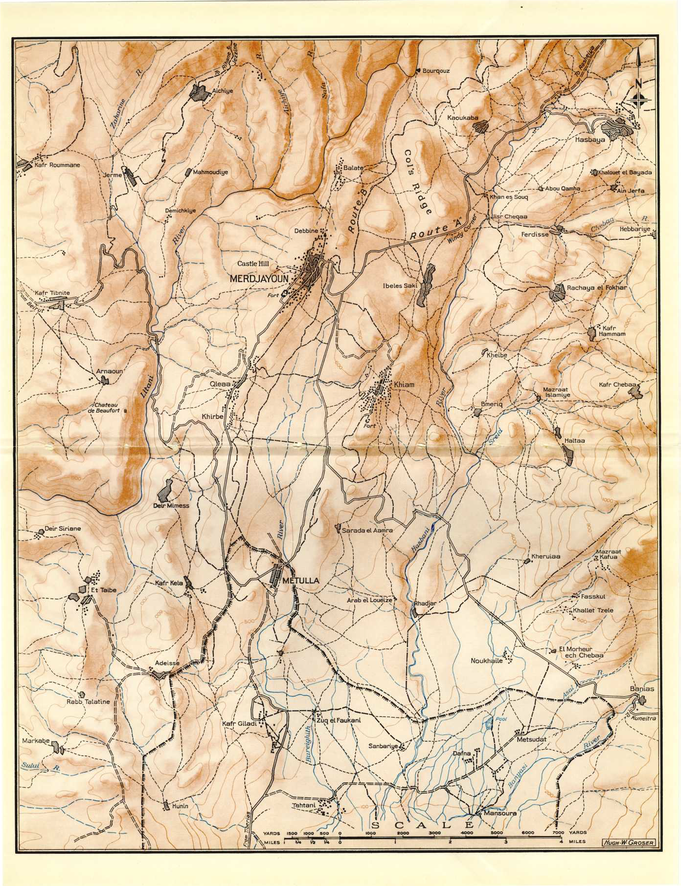 أظهرت الخرائط وجود طريق واحد يصل بين مرجعيون وجزين، وكان هذا الطريق يلتف حول سلسلة من الجبال شديدة الانحدار، وكان من الواضح ان لدى العدو إمكانيات كبيرة لإعاقة تحركهم عليها في حال سلوكهم له، رغم ذلك تلقى فوج تشيتشاير يوماني أوامر بالتقدم لمسافة خمسمائة ياردة لاستكشافه، وقد أفاد هؤلاء أنه توجد إمكانية لسلوك الطريق من جهته الجنوبية، وعليه دفع إليه كوكس مجموعة من الجنود من الكتيبة 2/31 معزز بمفارز قوية من سلاح الخيالة والمدفعية والهندسة للسيطرة على ثلاث مواقع محاذية لذلك الطريق وهي: