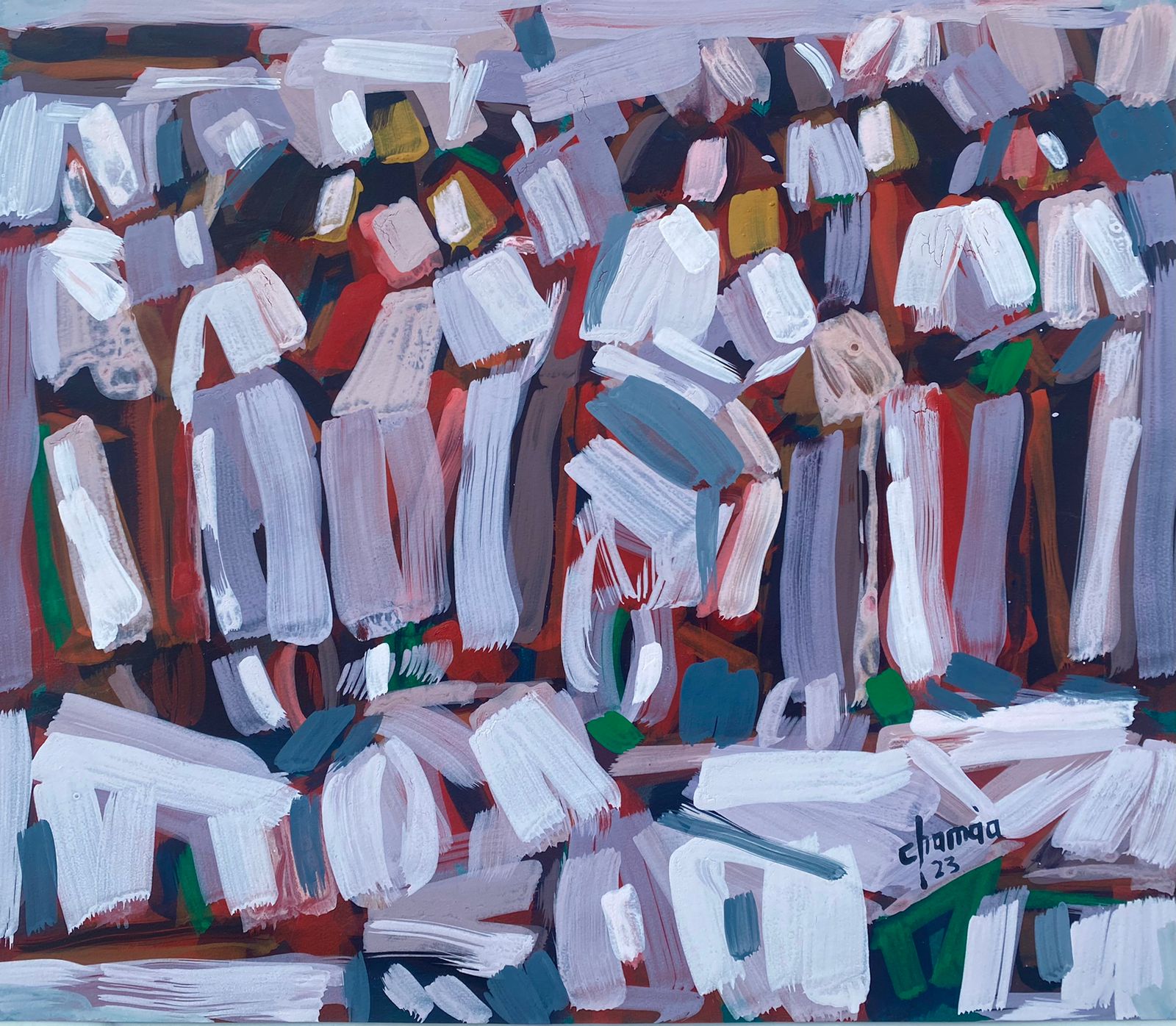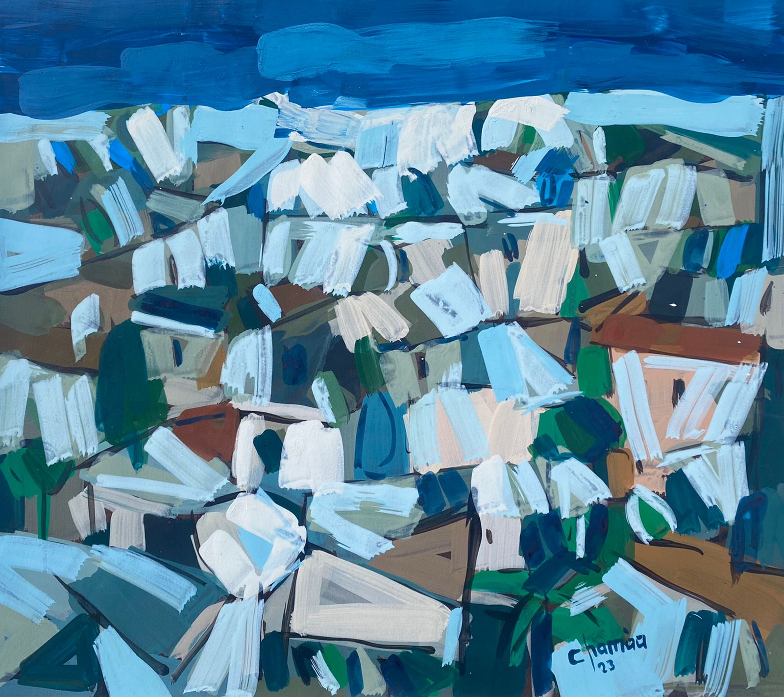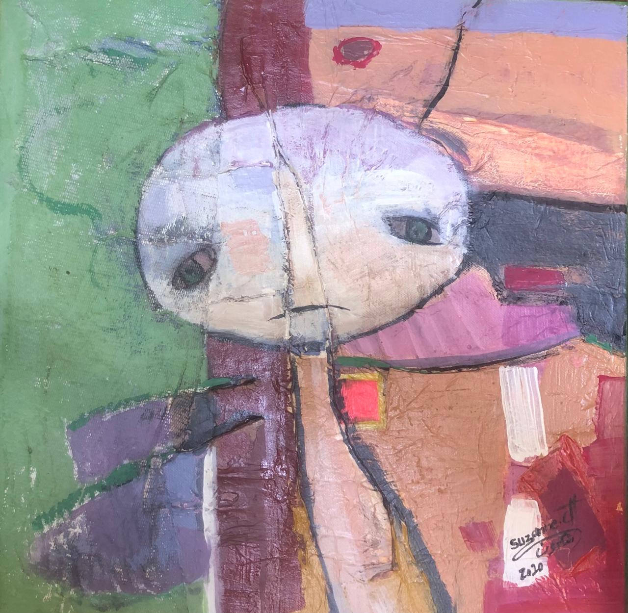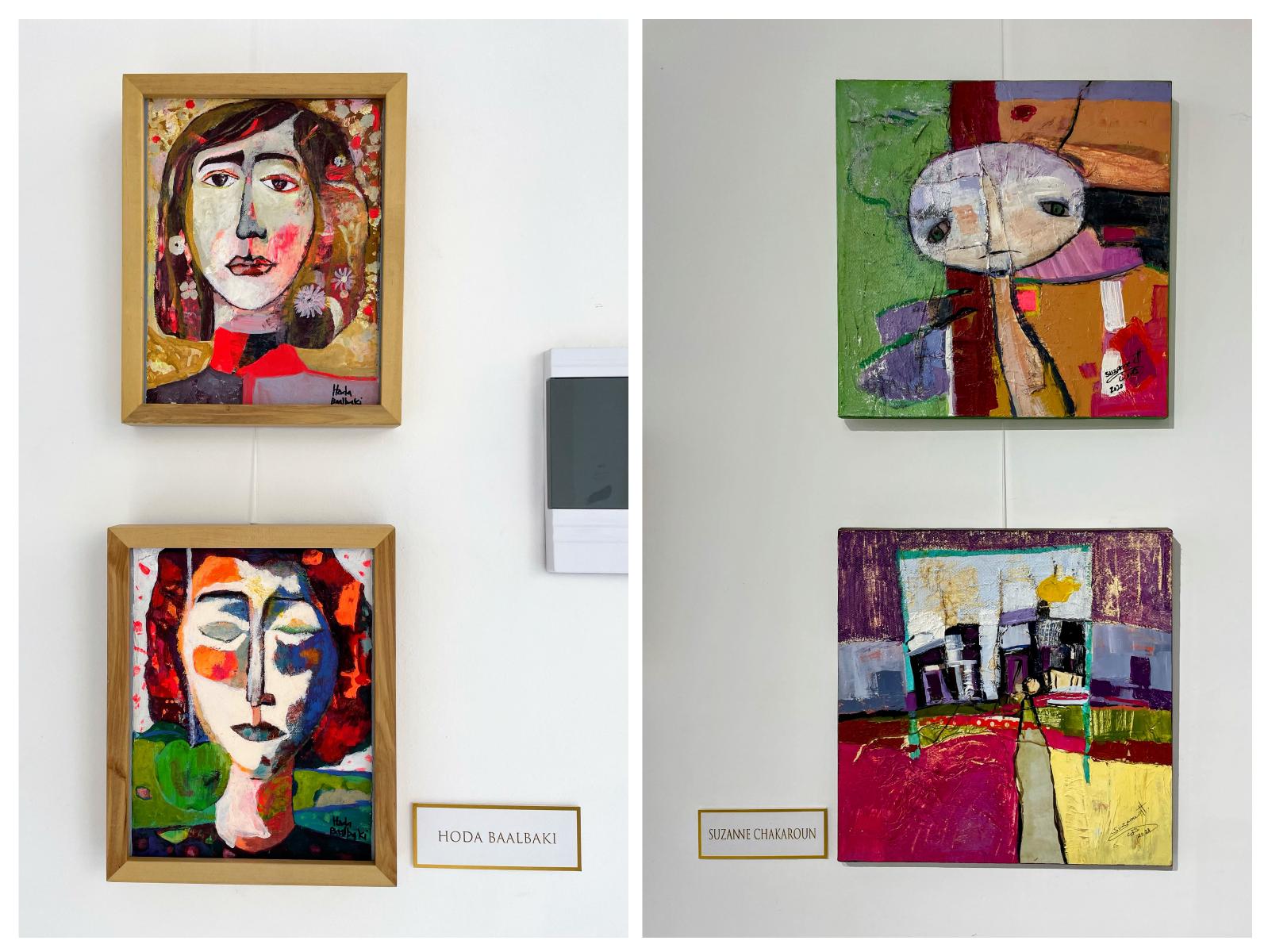 يغلب على أعمال سوزان شكرون الطابع الطفولي، عبر أشخاصها وتفاصيل الأوجه المجسدة ببراءة وعفويّة وبالألوان الثريّة. تتحوّل اللّوحة إلى سمفونيّة تحاكي الروح والعين والقلب، فتدغدغ مشاعرنا وأحاسيسنا، ونستسلم لمرسلتها الجماليّة المطعّمة بدلالاتها المرافقة لها. استعملت الفنانة تقنيّة الأكريليك مطعّمة ببعض الكولّاج، فجاءت مريحة للعين عبر تناغمها التعبيريّ والغنائيّ. هكذا تجتمع لوحات الفنّانين الصغيرة الحجم، في غاليري «نور بلّوق»، لتزرع الأمل في مدينة النبطيّة التي لا تكفّ عن سماع أصوات الحرب والقتل.