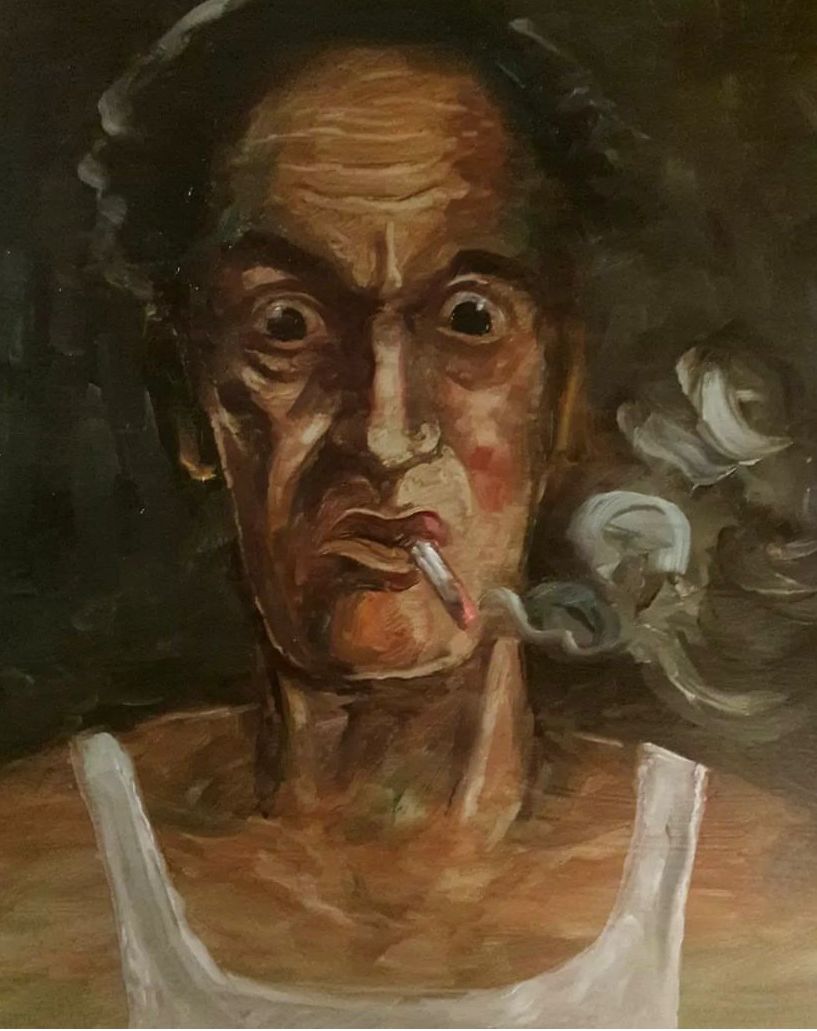 عبّاس مكّي التعبيري بموضوعاته وألوانه الترابيّة، يلف التضاد الضوئي في لوحاته حول مخلوقاتها وتعابير وجوهها وحركاتها. يلجأ إلى تشخيصيّة حرّة لافتة ومحرّرة عبر تأليف محبّب ومنفلت. فهؤلاء الأشخاص الذين يلعبون الورق تكتّلوا عبر تأليف دائريّ لا ينفصم عراه، لتظهر اللّوحة المعلّقة على جانبهم بشكلها الهندسيّ اللامتناسق الأضلاع وهي بمثابة القفص لهم. لوحة لمدخّن يمجّ سيجارته لتظهر منها كتلة دخانيّة ثقيلة تدل على هموم زادت من قوّتها وثقلها العينان المتّسعة حدقتاها وتعابير الوجه الحادّة والصارمة والمؤلمة.