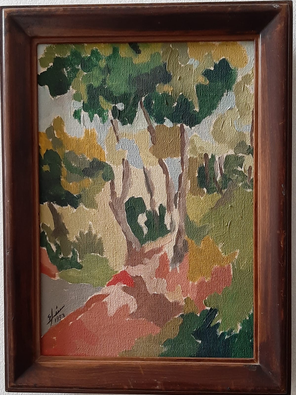 أمّا حسين حسين، ابن منطقة صور، فقد غلبت الطبيعة والحياة الريفيّة على أعماله كدواء لأزمة الحياة التي نحياها؛ مناظر طبيعيّة ونساء محجّبات يسرن إلى أعمالهنّ تحت المظلّة، أو ينشرن الغسيل في الخارج، بأسلوب تشخيصيّ مجرّد، والأشكال متفلّتة من حدودها وسجنها. احتوى أحد الأعمال على وجه فيه معاناة يحاكي وجه سيّدنا المسيح بجلجلته.
