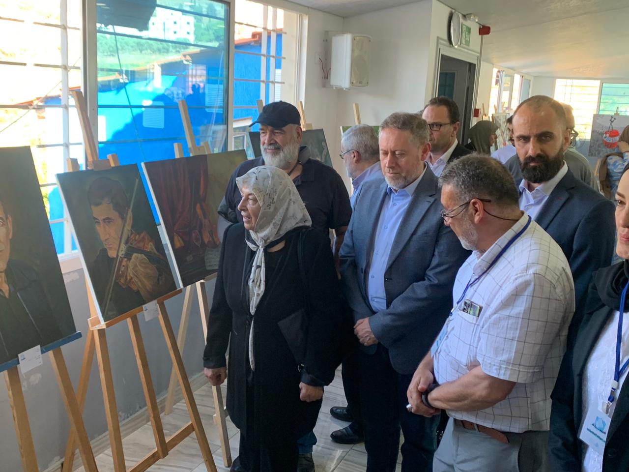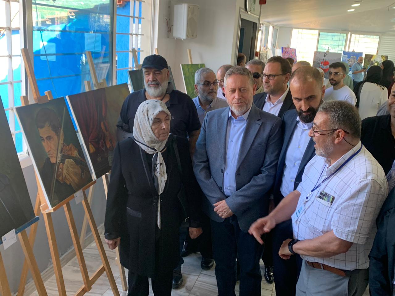 وقال: اليوم وفي ظل المجازر في غزة وصمود أهلها الإسطوري. وفي ضروف الحرب على حدودنا التي نسمع اصواتها ونكتوي بنارها وندفع الأثمان الغالية من خيرة شبابنا ومعاناة اهلنا في قرى المواجهة من دمار بيوتهم وخراب أرزاقهم فباتوا نازحين في وطنهم. وحيث يسطر رجال مقاومتنا أشرف المواجهات ويذيقون أعداءنا وبال أمرهم ويدمرون أحلامهم ويقوضون أسس بنيانهم ويدقون مسامير نعوشهم ويحيون أمل الأمة بزوال الظلم ونصرة الحق ويقتربون رويدا من حلم التحرير القادم لامحالة، ومن قال ان المقاومة سلاح فقط، فنحن في إقامة معرضنا الفني هذا إنما نقاوم بالريشة واللون ونبرز الوجه الحضاري والإنساني والجمالي لشعب أراد الحياة عزيزة كريمة فقط، وهذا العام نرسم الأمل وإرادة الحياة والصمود، لا داعي للكلام الكثير فاللوحات تحدثكم وتهمس في آذانكم وقلوبكم أصدق المشاعر.