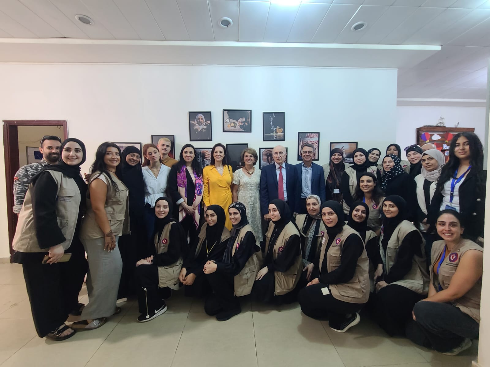 وكان في استقباله الدكتور كامل مهنا رئيس مؤسسة عامل الدولية، وعقيلته المربية فايدة مهنا، وعضوي الهيئة الإدارية الدكتور قاسم علوش والدكتورة زينة مهنا، ومسؤولي البرامج: سكنه الحولي، ومحمد الزايد، ولمى عجروش، وهدى خاتون خلال جولتهما في المبنيين، حيث شرح منسقوا البرامج الأعمال اليومية والأهداف.
