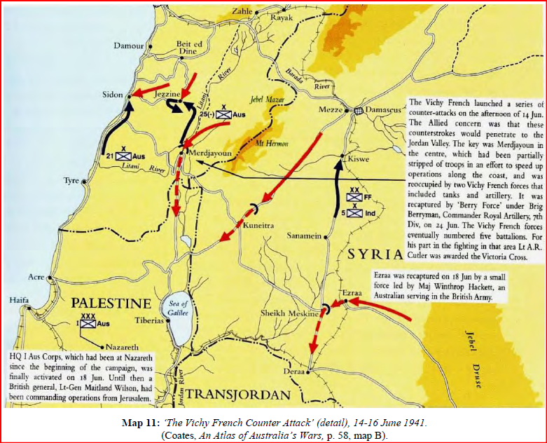 أدى هذا الهجوم المضاد المزدوج الى تهديد اتصالات جميع القوات الغازية وتغيير الموقف برمته في شرق لبنان، وبما انه لم يكن يتوفر الا عدد قليل من القوات الاحتياطية لتعزيز ودعم المنهزمين، أوعز الجنرال ويلسون للفرقة الأسترالية 7 لتقديم مدفعيتها المضادة للدبابات والذخيرة التي لديها للمساعدة في الدفاع عن القنيطرة، وأمر بإرسال كتيبة الاستطلاع 2/الملكية، من اللواء البريطاني 16، إلى درعا.