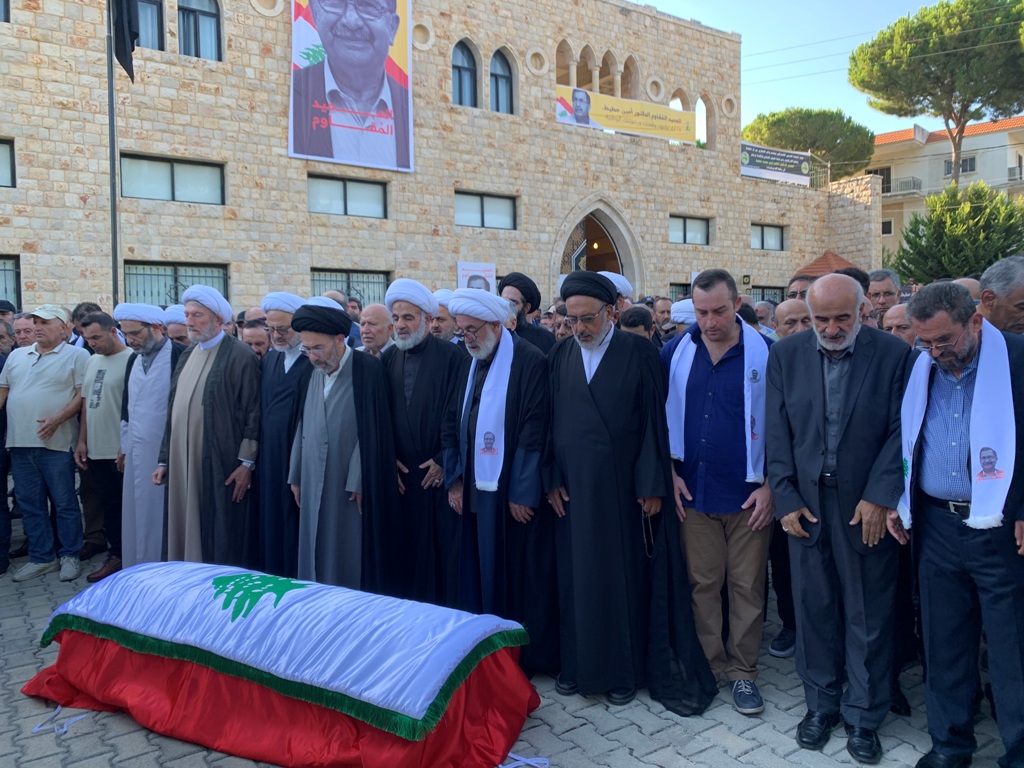 وحمل نعش الفقيد من منزله الى باحة مفرق الدوير -الشرقية حيث اقيمت مراسم تكريمية خاصة ، وحملت ثلة من الجيش اللبناني النعش وقد لف بالعلم اللبناني ، الى منصة اعدت للمناسبة ، وعزفت الفرقة الموسيقية التابعة للجيش اللبناني لحن الموت ، ثم أدث عناصر عسكرية التحية العسكرية للفقيد ، بعدها سار المشيعون في موكب باتجاه مجمع بر الوالدين في ساحة الدوير ، حيث استقبلت الجثمان عناصر من الجيش اللبناني ، وعلى وقع لحن الموتى الذي عزفت الفرقة الموسيقية في الجيش ، جرى تقديم التحية العسكرية بحضور النائب هاني قبيسي، الوزير والنائب السابق محمد فنيش، النائب السابق ناصر قنديل، رئيس المكتب السياسي في حركة امل جميل حايك وعضو هيئة الرئاسة خليل حمدان، العميد عبدالله حرب ممثلا قائد الجيش العماد جوزاف عون ، العميد احمد علي احمد ممثلا المدير العام لقوى الامن الداخلي اللواء عماد عثمان ، المقدم علي حلاوي ممثل المدير العام للامن العام اللواء الياس البيسري، المقدم حسين طباجة ممثلا المدير العام لامن الدولة اللواء طوني صليبا، رئيس مكتب مخابرات الجيش في النبطية العميد علي اسماعيل، مسؤول منطقة جبل عامل الثانية في حزب الله علي ضعون، مسؤول وحدة العلاقات الاعلامية المركزية في حزب الله محمد عفيف ، امين فرع حزب البعث العربي الاشتراكي في الجنوب احمد عاصي، وحشد من الشخصيات والقيادات العسكرية والامنية والاهلية .