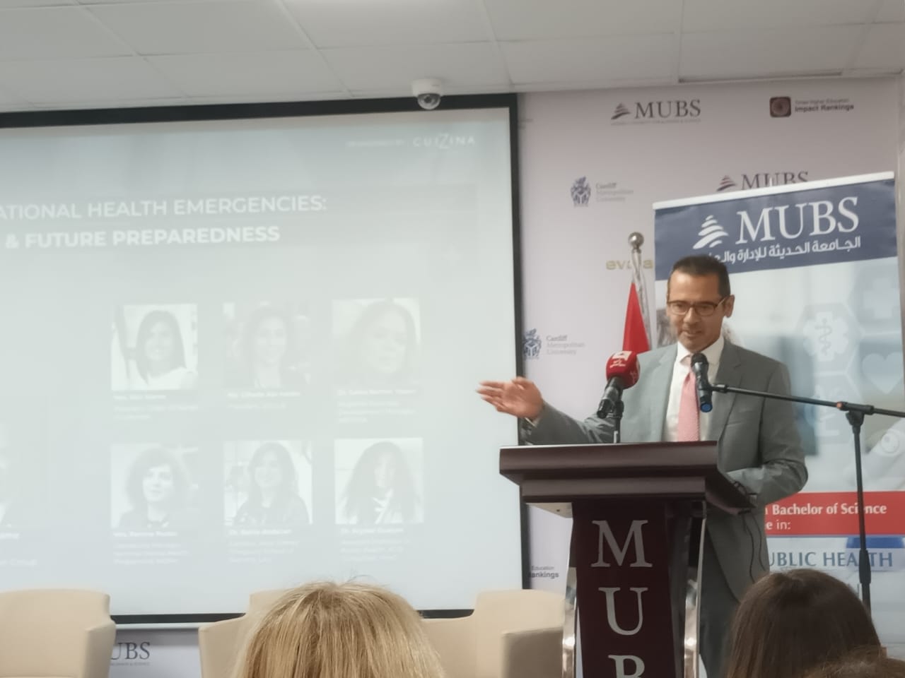 نظمت كلية العلوم الصحية في الجامعة الحديثة للإدارة والعلوم (MUBS)، فرع بدارو، ندوة صحية حملت عنوان "الاستجابة للطوارئ الصحية الوطنية: الدروس المستفادة والاستعداد المستقبلي"، تحت إشراف عميدة كلية الصحة في الجامعة الدكتورة ندى علاء الدين، وحضور رئيس إتحاد المستشفيات العربية النائب د. فادي علامة، ومدير عام وزارة الصحة الأستاذ فادي سنان بالإضافة الى فعاليات سياسية وأكاديمية وتربوية واجتماعية وثقافية وعسكرية واعلامية وإداريي وطلاب الجامعة.