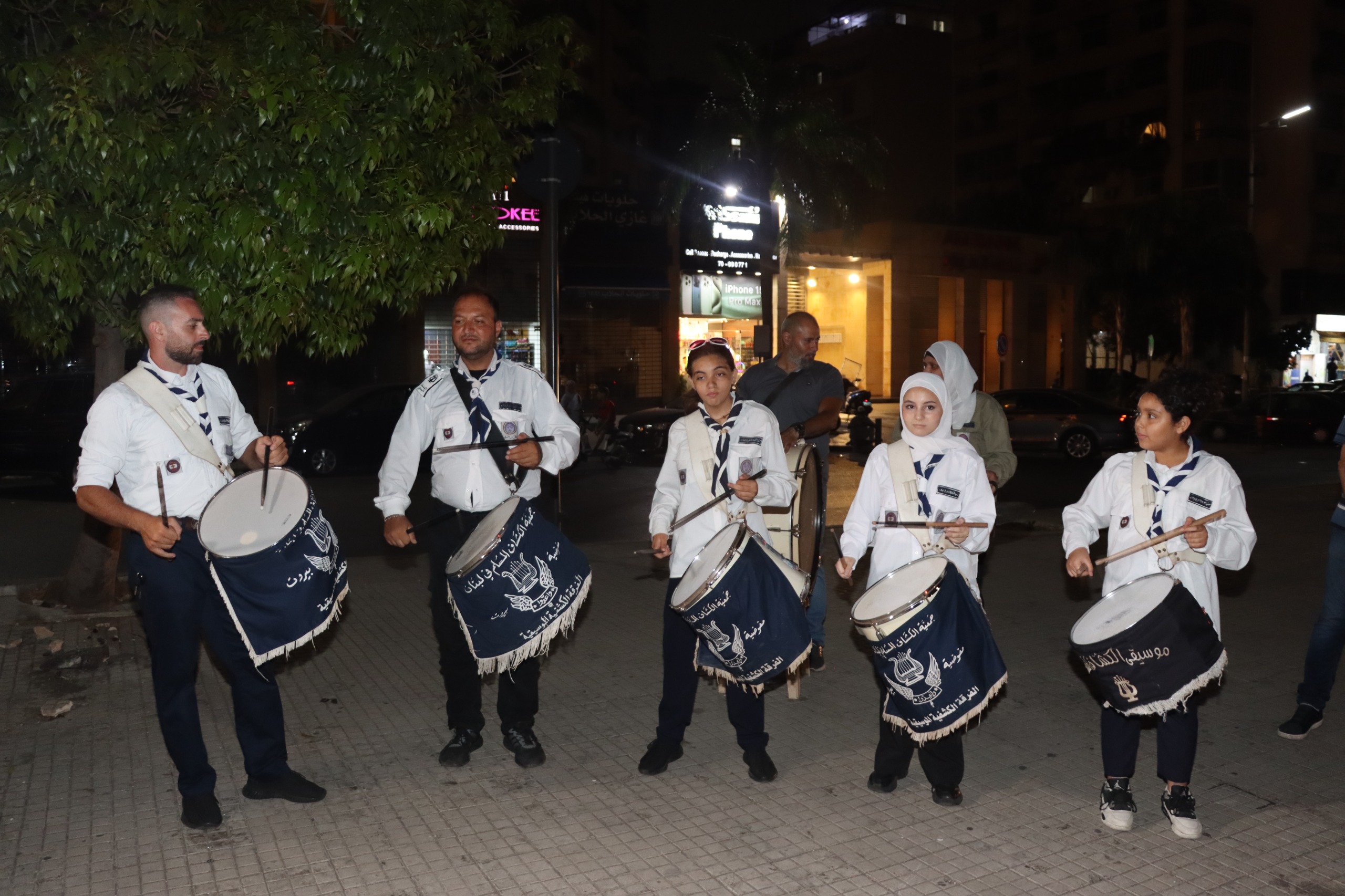 ثم توجه الجميع إلى الشارع الخلفي للمركز، وعلى صدى موسيقى فوج الكشاف المسلم تم قص شريط الافتتاح وأخذ الصوَر الجماعية أمام اللافتة التي تشير إلى مبادرة الجمعية في إنارة الشارع مع عبارة "يداً بيد لإنارة الوطن"، وبعدها تم إنارة الشارع.