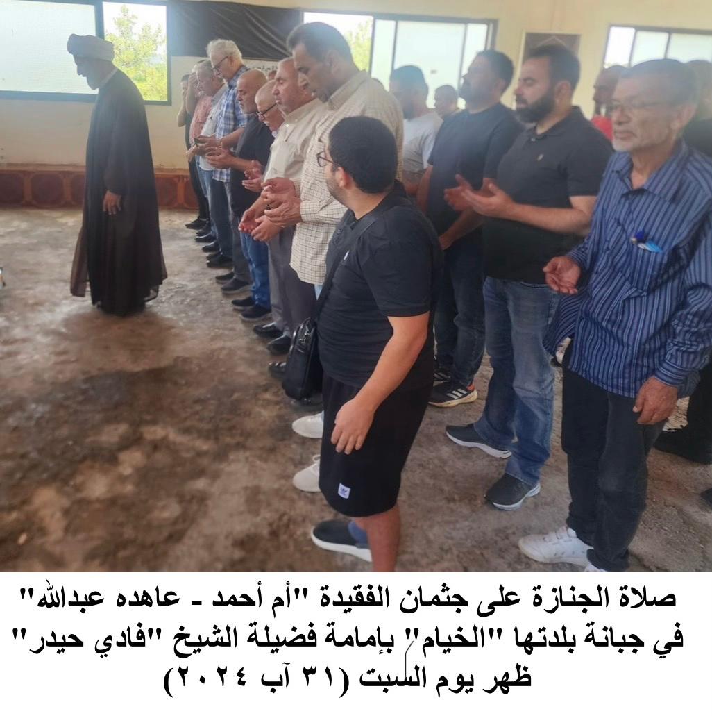 أقيم عصر اليوم الاثنين (٠٢ أيلول ٢٠٢٤) ذكرى اليوم الثالث على روح الفقيدة الغالية المرحومة أم أحمد - عاهده نمر حسين يوسف عبدالله (١٩٣٨-٢٠٢٤م) وذلك في مجمع المجتبى الخيري حي الأميركان بمحلة الحدث (الضاحية الجنوبية).