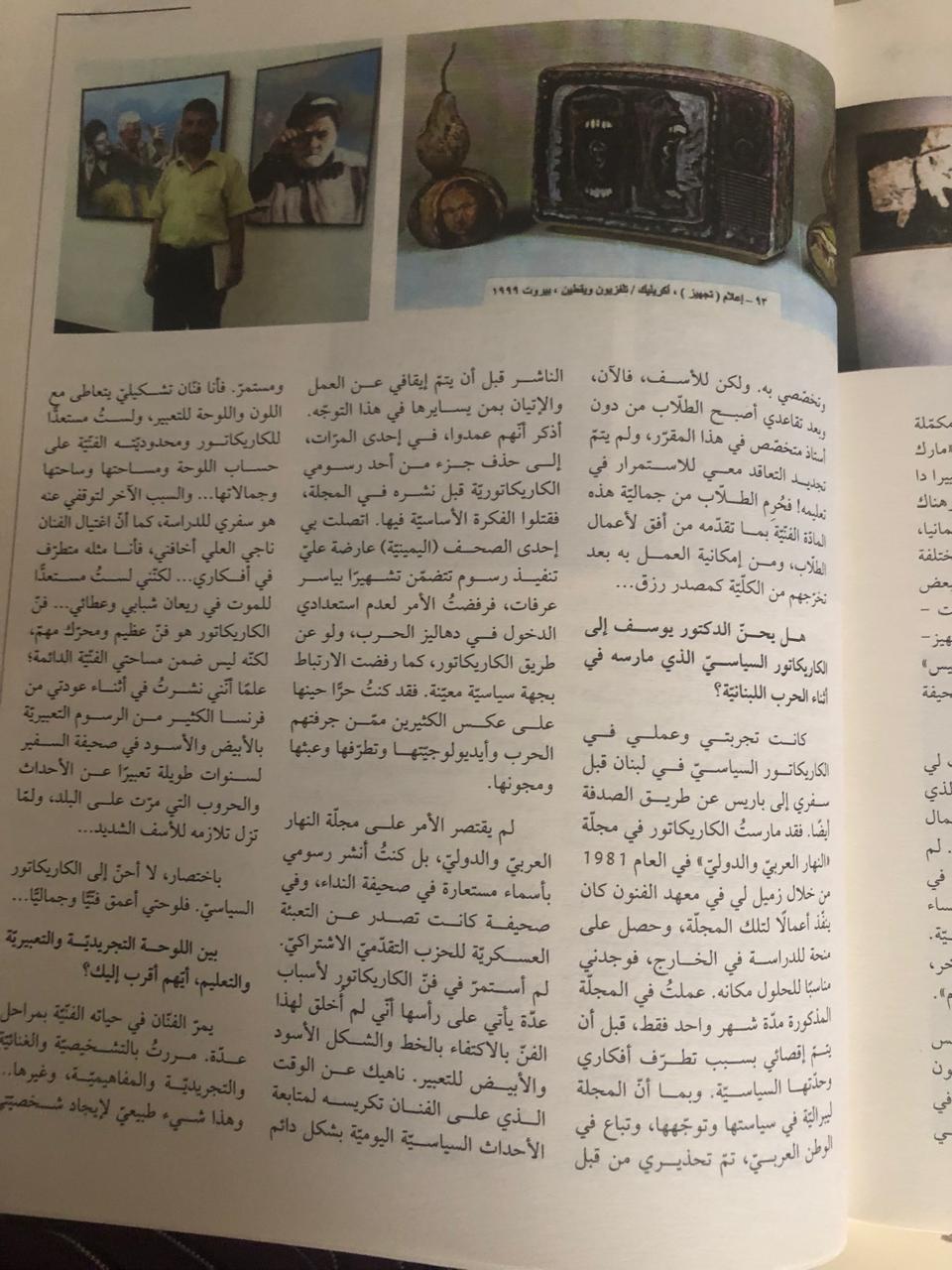 2- هل يحنّ الدكتور يوسف إلى الكاريكاتور السياسيّ الذي مارسه أثناء الحرب اللبنانيّة؟