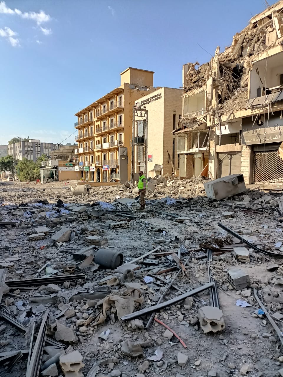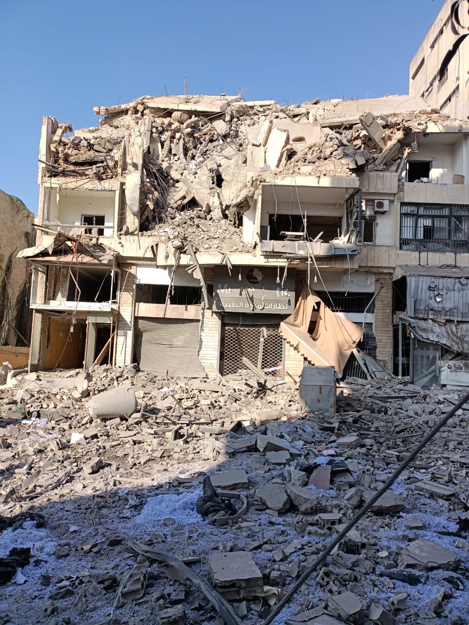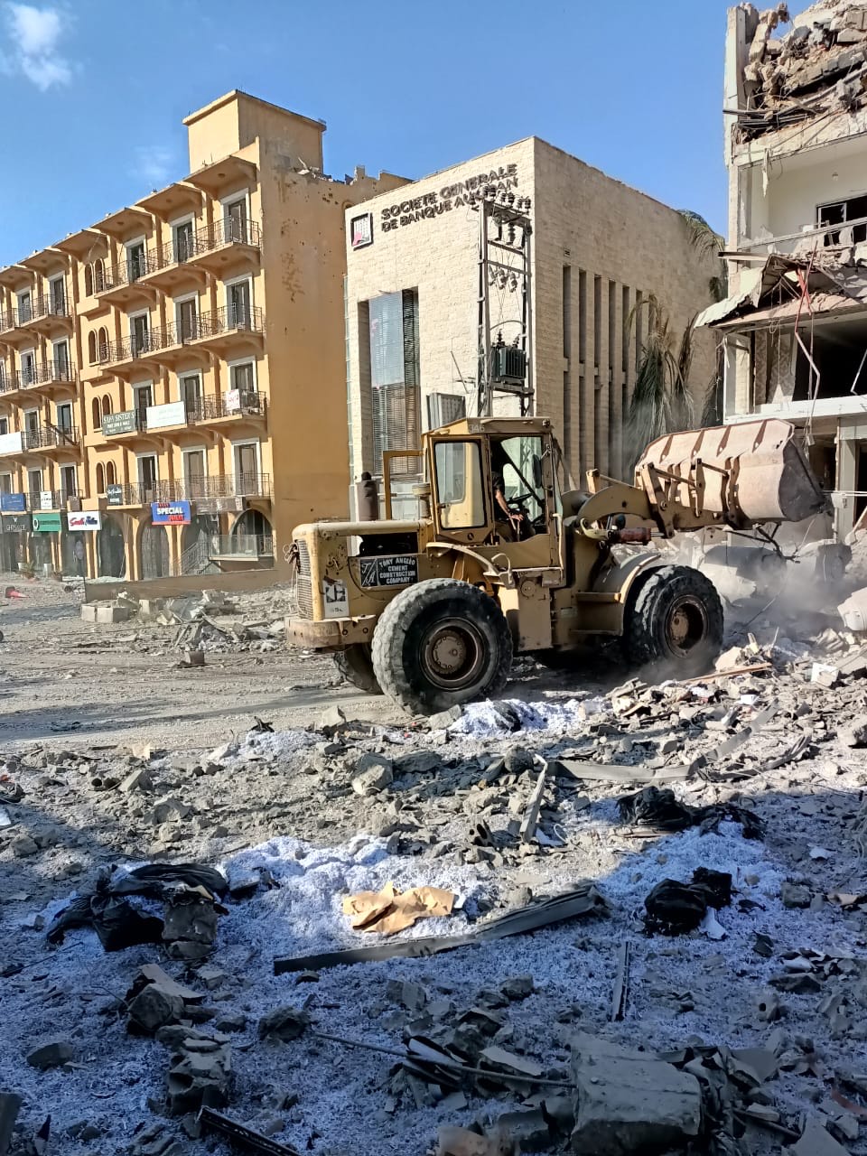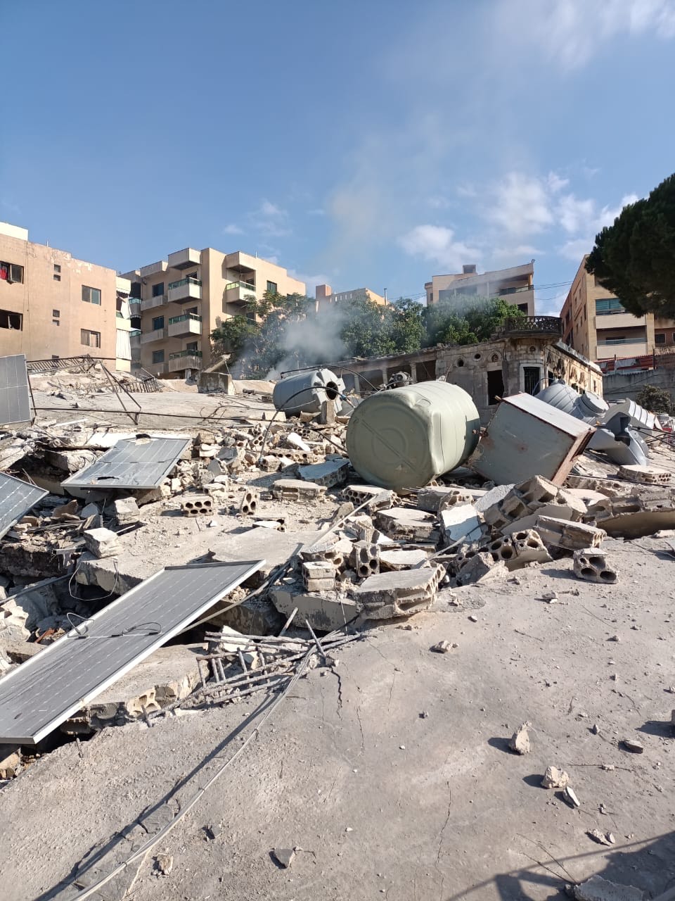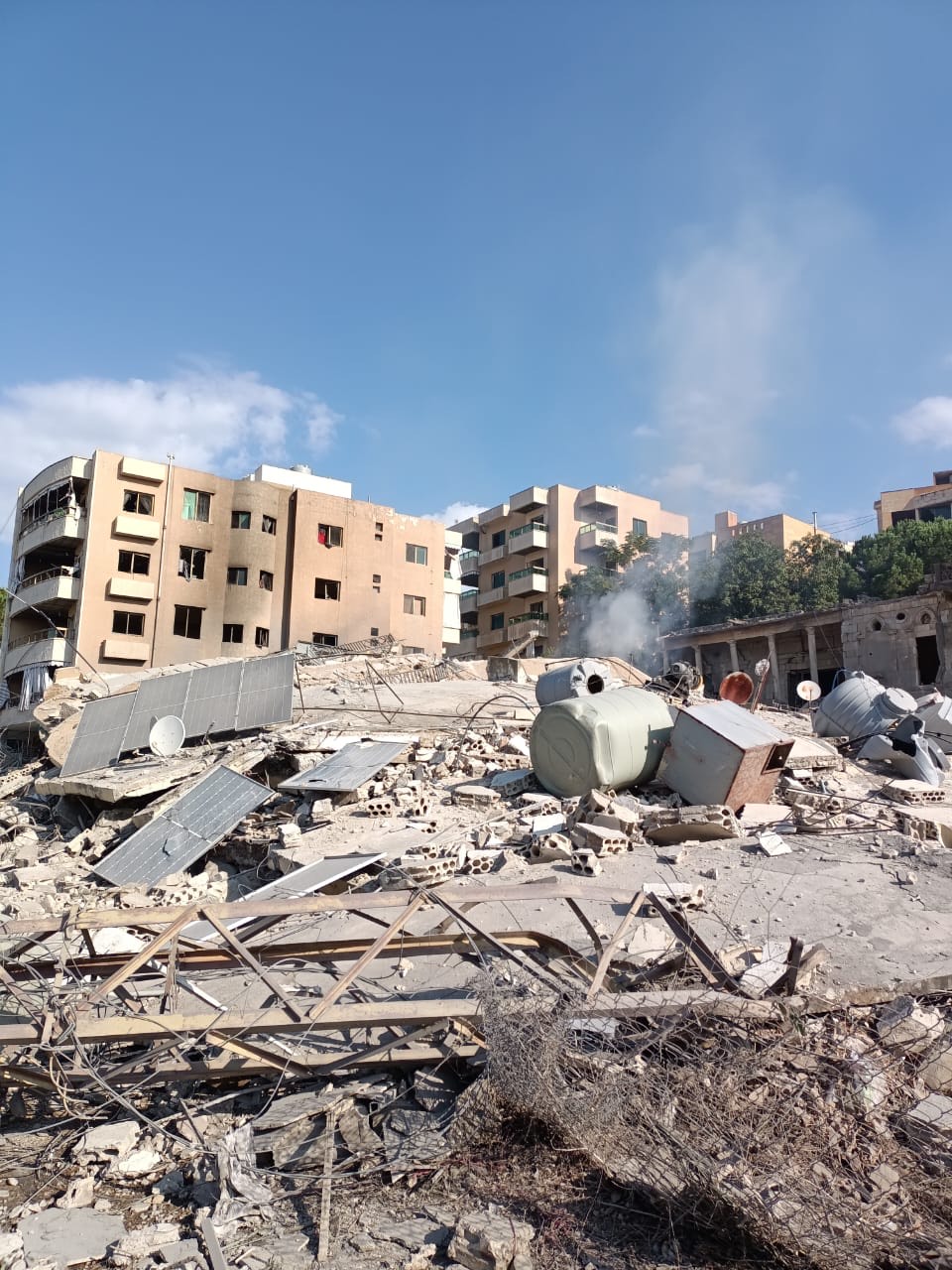 كما دمرت غارة جوية معادية مبنى من 7 طوابق محاذي لمكتب النائب ناصر جابر القريب من حي مصرف لبنان ، وتضررت جراء الغارة ايضا العديد من الشقق السكنية والمحال التجارية