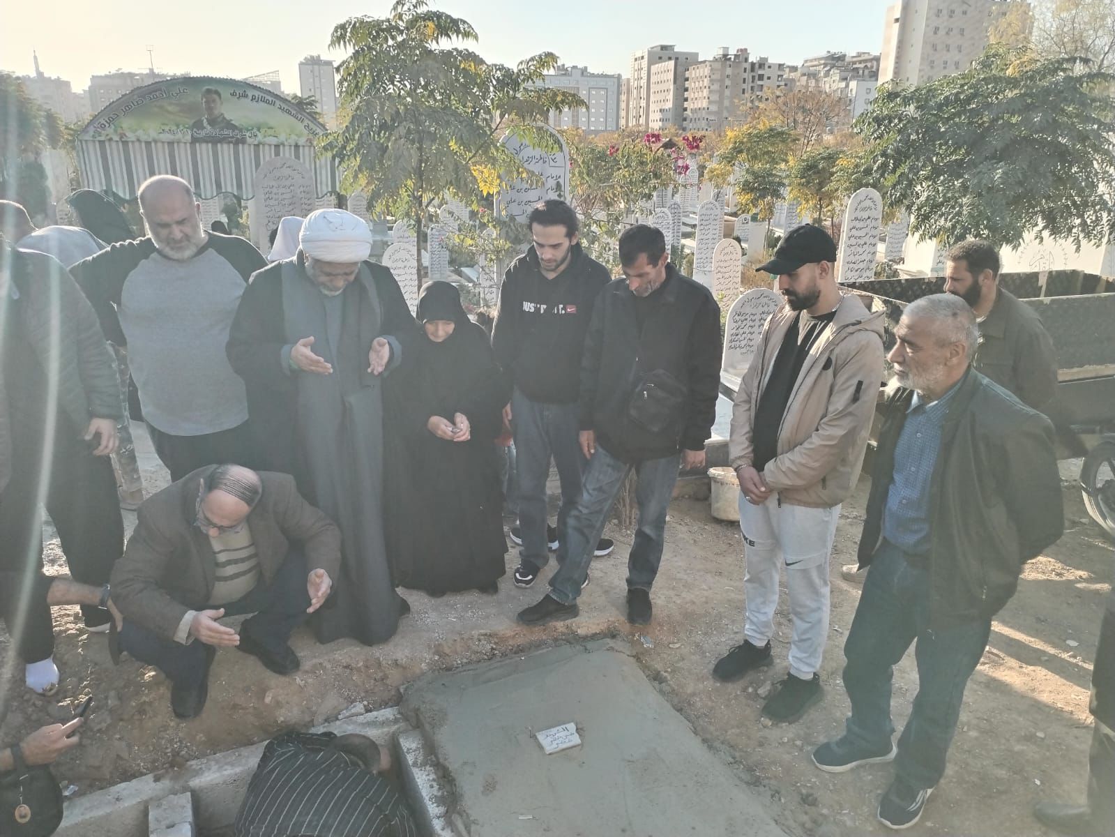 تم أداء صلاة الجنازة على الجثمان الطاهر بعد ظهر يوم الجمعة (٢٠٢٤/١١/٢٢) في مقام السيدة زينب (ع) بدمشق ومن ثم تم التشييع في مدافن روضة الشهداء بالقرب من الحضرة الزينبية، حيث وُريَ جدث الرحمة.