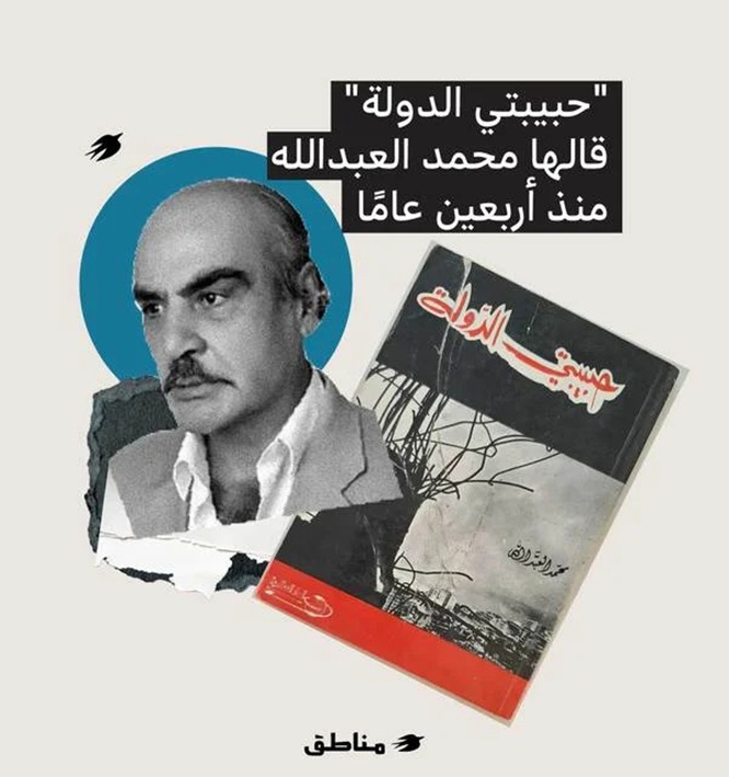 في كتابه “حبيبتي الدولة“ الصادر في منتصف الثمانينيّات، يفتح محمّد العبدالله أبواب البوح على مصراعيها، بوح لا يشبه أيّ بوح آخر، لا يمشي على السطور المكرورة ولا يلبس أثواب البلاغة المزخرفة. فمَن من المبدعين تساءل يومًا: كيف يمكن أن تُغازل الدولة؟ وكيف يمكن أن تُلامس نبضها بعيدًا من معاجم “الوطن” المستهلكة، حيث تُغرق الكلمة في بحر الكليشّيهات المتخمة بصوَر “الجبين العالي”، و”زنود الأبطال”، و”المجد المسوّر بالغار”؟