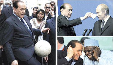 وكلما نشأت أزمة هرع برلسكوني الى حلها بطريقته الخاصة، فحين قال انه يعتقد بتفوق الحضارة الغربية على الاسلامية أسرع الى زيارة المسجد الكبير في روما، برفقة السفير السعودي آنذاك الأمير محمد بن نواف، وأعلن التزام الحكومة بالتفريق بين الدين الاسلامي ومكافحة الارهاب، وحينما هبت في وجهه قضايا فساد يشتبه في تورطه بها، القى اللوم على منافسيه، مشددا على براءته. وحين سخر بشكل فج من المصابين بمرض نقص المناعة المكتسبة (الايدز) ملقيا دعابته الشهيرة «ذهب مريض بالايدز الى الطبيب وسأله ما اذا كان الدواء بالرمال الذي وصفه له لعلاج الايدز سيشفيه؟ رد الطبيب .. لا، لكنه سيجعلك تألف فكرة الدفن». وعندما كثرت الانتقادات له بسبب هذه الدعابة، قال لمنتقديه «أنصحكم بتجريب دواء الرمل». ويقول المنتقدون لبرلسكوني، انه دخل السياسة لينقذ امبراطوريته المالية، خاصة بعد تكاثر مشاكله مع القضاء ومحاولة محاكمته بتهمة رشوة أحد القضاة، بل إن الاتهام وصل اخيرا الى حد اتهامه برشوة زوج احدى الوزيرات في بريطانيا، كما أن المحكمة أصدرت حكما بسجن محاميه ووزير الدفاع السابق شيزاريه بريفيتي، ايضا اغضبت الحرب على العراق غالبية الايطاليين. لكن برلسكوني يرد قائلا إن بعض القضاة يلعبون لعبة سياسية تخدم اليسار. ويقول فاوستو برتينوتي زعيم حزب «الشيوعيون المتجددون» إن «الشعب الايطالي لم يتعب من السياسة، لكنه ضد السياسة المنفصلة عن الشعب والمجتمع، أما الحرب في العراق، فالهدف منها السيطرة على الشرق الأوسط وموارده النفطية، ورغم أخطاء صدام حسين الكثيرة فهذا لا يبرر الاحتلال». لكن جيوفانا كارليني وهي من المعجبات ببرلسكوني والناشطة لانتخابه من جديد تقول «انه عصامي جذاب نشيط، ذو ارادة قوية ويعالج الامور بالإيجاب». تعليقات برلسكوني على انتخاب اوباما لم تكن لائقة حسب أغلبية الرأي العام الايطالي، والبعض كان يفضل لو أن رئيس الوزراء أعرب عن افتخاره بفوز اميركي من اصول افريقية بالرئاسة بدل اللجوء الى المزاح السمج، والشعور العام بأن لسان برلسكوني «ما عليه رباط» لذا فالإيطاليون خجلون من تلك الزلة وبعضهم يعتقد بصحة المثل الايطالي القائل «مزحة وراء مزحة ثم نصل الى الحقيقة». لكن هدف برلسكوني الحقيقي ربما لم يكن إهانة اوباما كما خيل للبعض بل إضعاف صورة خصمه زعيم اليسار فلتروني الذي يحاول التشبه بالرئيس الاميركي المنتخب. وآخر النقد الساخر والهجاء الذي أطلقه برلسكوني على اليسار قوله في أحد خطاباته لجماهير حزبه اليميني «أتعرفون لماذا يحب اليساريون الفقراء؟» ويجيب على سؤاله بنفسه قائلا «لأنهم يزيدون أعداد الفقراء كلما استلموا الحكم».