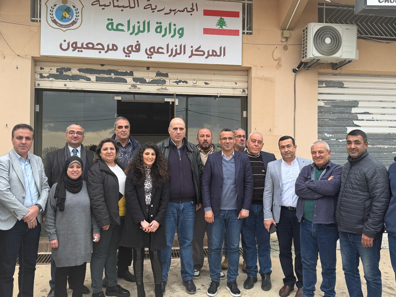 ووصل وزير الزراعة والوفد المرافق له إلى بلدية جديدة مرجعيون قرابة الساعة الحادية عشرة والنصف حيث اجتمع مع رؤساء البلديات والمخاتير والتعاونيات الزراعية في المنطقة واطلع على اوضاعهم.