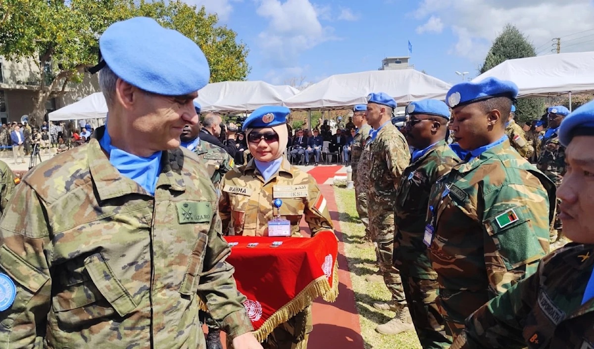 وتحت هدير الطائرات الإسرائيلية في سماء الناقورة، أكّد قائد القوات الدولية الجنرال آرلودو لاثارو، بحضور ممثلين عن الدول المساهمة في البعثة وعدد من ضباط الجيش اللبناني، أن هذه القوات «ملتزمة بتخفيف التوترات وتعزيز الحوار من أجل وقف دائم لإطلاق النار في الوقت الذي يجب أن تظل القوات المسلحة اللبنانية الضامن الأمني الوحيد في الجنوب».