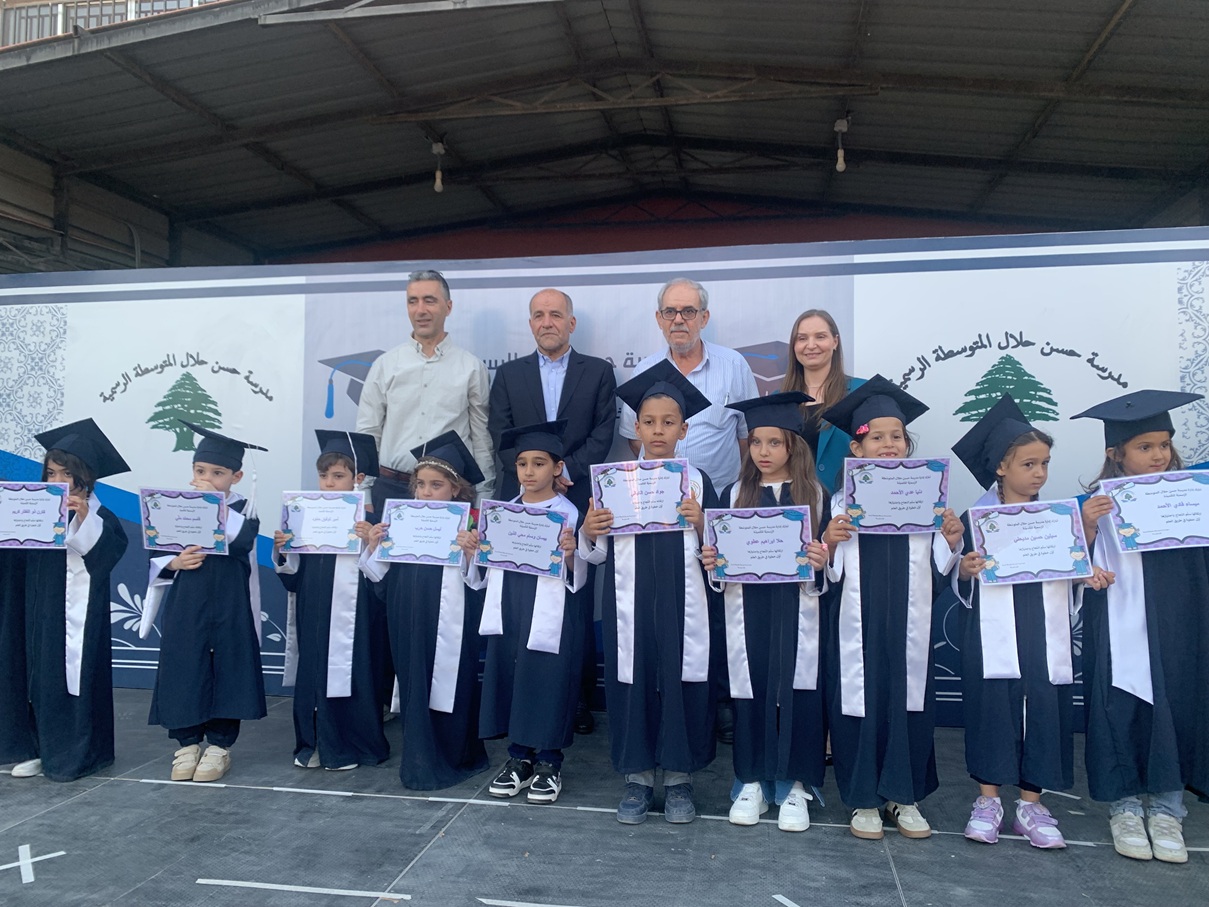 بعد النشيد الوطني افتتاحا، ودخول موكب الطلاب، وكلمة تعريف وترحيب من المربية آمنة نور الدين ، قدم طلاب من المدرسة لوحات فنية وفولكلورية ، ثم ألقيت كلمات لطلاب ، تلاهم كلمة مديرة مدرسة حسن حلال المتوسطة فاديا مكي قالت فيها : نقف اليوم وسط بقايا عام جريح لا لنطوي صفحة سنة دراسية فقط بل لنروي حكاية تحد وإصرار على النهوض من تحت الركام نجتمع اليوم تحت عنوان عزيز ولد من قلب الألم لكنه مشبع بالأمل. " من تحت الركام نزهر من جديد" هذا العنوان لم يكن مجرد كلمات منمقة بل هو تلخيص لعام دراسي مضني عشناه بكل ثقله بعد حرب قاسية عصفت ببيوتنا ومدارسنا فهدمت الحجر لكنّها لم تستطع أن تكسر البشر رحل منّا شهداء... أبطال كتبوا أسماءهم بدمائهم في سجل الكرامة. فاسمحوا لي أن أطلب منكم قراءة الفاتحة لأرواحهم الطاهرة... فهم رحلوا لنحيا، وليبقى لنا مكان في زمن طغى فيه الدمار ولف الألم تفاصيل أيامنا بقيت هناك شموع صغيرة تأبى أن تنطفئ تلامذتنا … هؤلاء المضيؤون رغم ظلمة الحرب التي لم تستطع أن تسرق براءتهم ولا أن تقتل شغفهم بالتعلّم من تحت الركام خرجت ضحكاتهم ومن بين الحطام نبتت كلماتهم فحققوا إنجازًا تلو إنجاز في الرياضة والفنون والأدب والعلوم وما كان لهذه الإنجازات أن تتحقق لولا الهيئة التعليمية والإدارية التي وقفت في وجه الصعاب بكل إخلاص وبذلت من روحها ووقتها لتبقى هذه المؤسسة حيّة فاعلة لكنّ معلمات مدرستنا أسمى كلمات الشكر والتقدير فأنتن عماد هذا الصرح رغم الظروف أثبتن أن التربية ليست مهنة بل رسالة وأن قلوبكن وضمائركن نابضة بالمحبة ولخريجينا الأعزاء أنتم الحكاية كلها أنتم الفرح والأمل المتجدد تغادرون اليوم هذا البيت الذي احتضنكم لسنوات متوجهين نحو مرحلة جديدة محملين بالذكريات والطموحات أوصيكم بأن تكونوا كما عهدناكم طلاب علم وأخلاق باحثين عن التميز مؤمنين بأن بالعلم نبني المستقبل إحملوا في قلوبكم ما تعلمتموه هنا القيم والإصرار والصدق والوعي وحب الوطن وتقدموا بكل ثقة فنحن نفتخر بكم وننتظركم في المستقبل قادة مبدعين رافعين راية العلم والنجاح أينما حللتم. الشكر للأهل الكرام،شركاؤنا الحقيقيون في العملية التربوية، أنتم الركن الثابت، والداعم الصامت، والسند الذي لا يتأخر. بمتابعتكم، وحرصكم، وتعاونكم، استطعنا أن نُكمل الرسالة، ونعبر معًا عامًا دراسيًا مليئًا بالتحديات والنجاحات. نقدّر ثقتكم بنا، ونعتزّ بهذه الشراكة التي تجمعنا على حبّ أبنائنا، فمعًا نبني، ومعًا نرتقي.