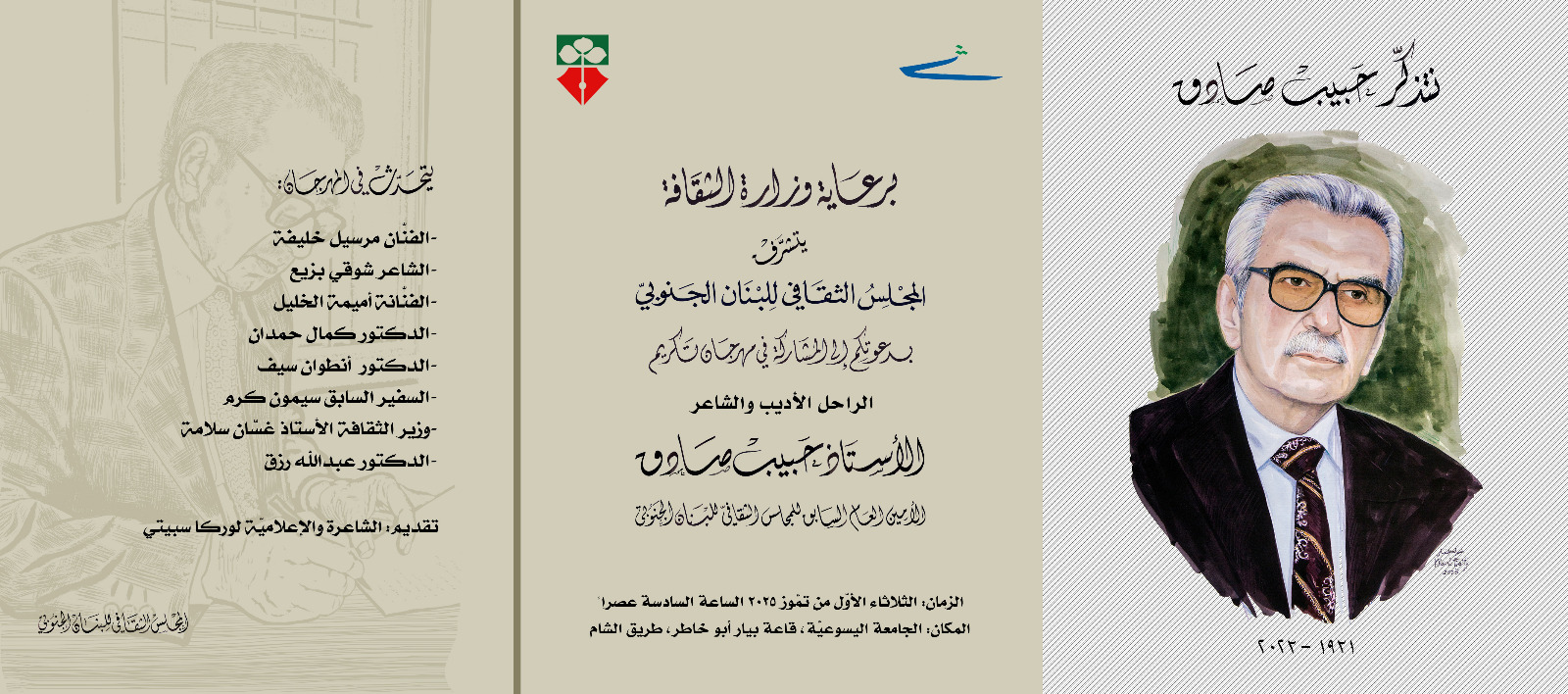 * في مناسبة الذكرى الثانية لغيابه، ينظم «المجلس الثقافي للبنان الجنوبي» مهرجاناً تكريمياً للأديب الراحل حبيب صادق في «قاعة بيار أبو خاطر» (الجامعة اليسوعية، طريق الشام ـ بيروت) يوم الثلاثاء 6 تموز (الساعة السادسة عصراً).