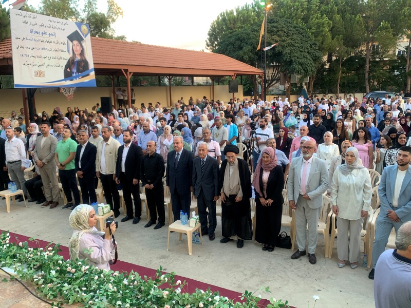 وقال : لو لم تكونوا أبناءً تربية قائمة على التمسك بالقيم، وأبناء تربة تمايزت أرضها بالصلابة والتحم إنسانها بالتضحية والصمود، لما نبتت فيكم روح تحدي اكتساب العلم والمعرفة والتطلع دوماً إلى الأعلى، فالشكر كل الشكر لآبائكم وأمهاتكم الصامدين رغم الاعتداءات والتهديدات، والتحية لإدارة ثانوية التربية والتعليم، ولهيئتها التعليمية التي عملت بوحي رسالتها، ليكون زادكم العلمي كما الضوء الذي ينير أمامكم مجالات التخصص وميادين الإبداع،