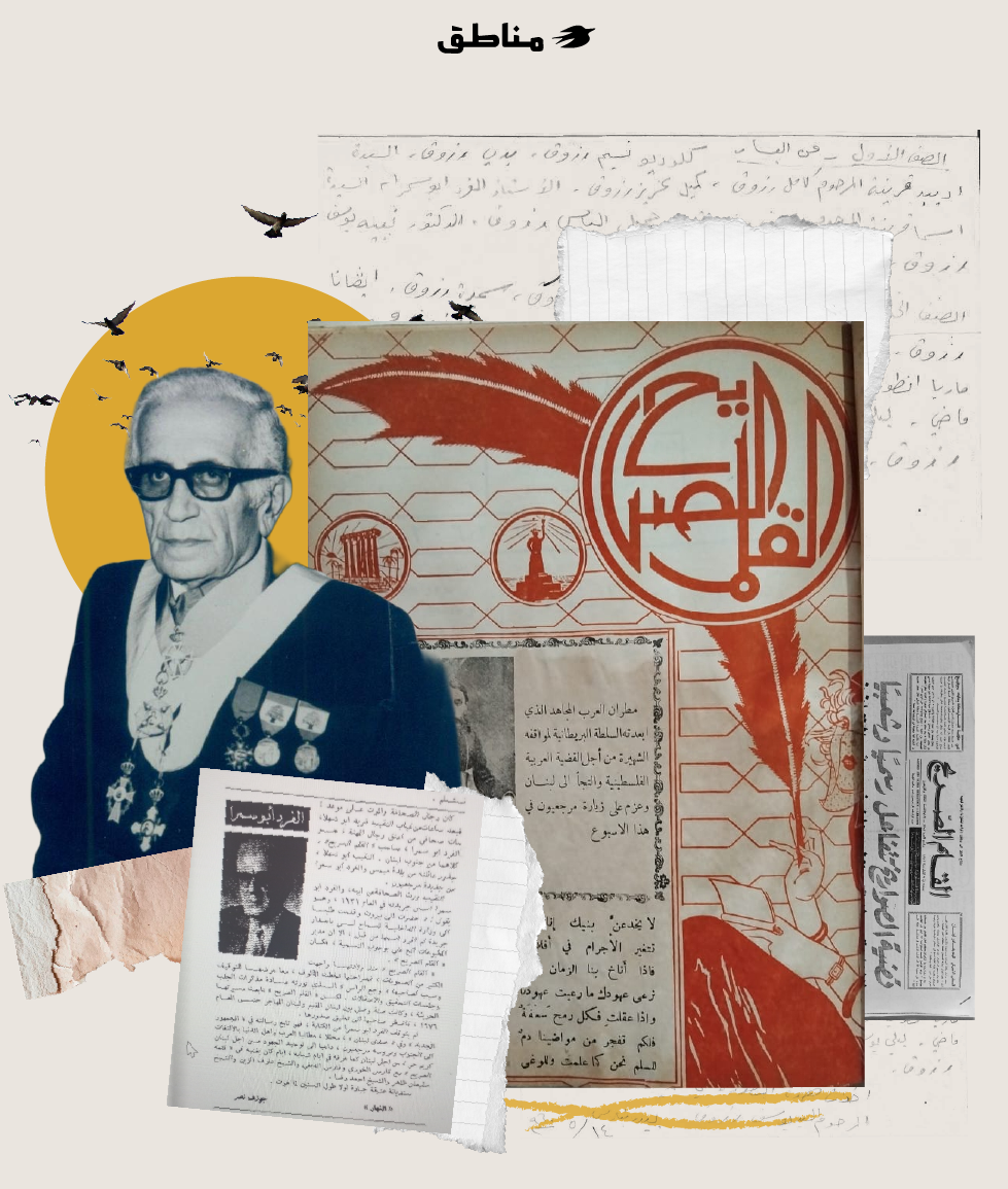 كان من وقت لآخر يكتب عن شؤون الوطن العربيّ، وتعرّضت جريدته للتوقيف أكثر من مرّة بسبب أرائه العروبيّة، وانتقاده لمشاريع الانتداب الفرنسيّ في لبنان وتدخّله في شؤون الدولة اللبنانيّة.