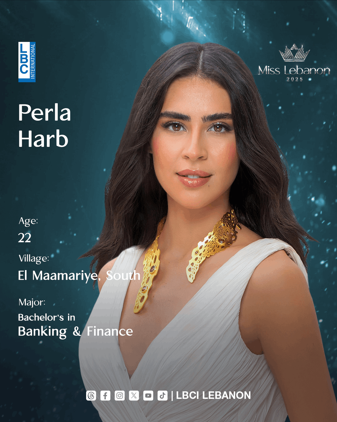 وقد خطفت بيرلا الأنظار بجمالها الطبيعي، وحضورها الراقي، وإجاباتها الذكية خلال مراحل المسابقة، لتحصد اللقب عن جدارة وتُهدي فوزها إلى بلدتها الجنوبية المعمّرية (قضاء صيدا).