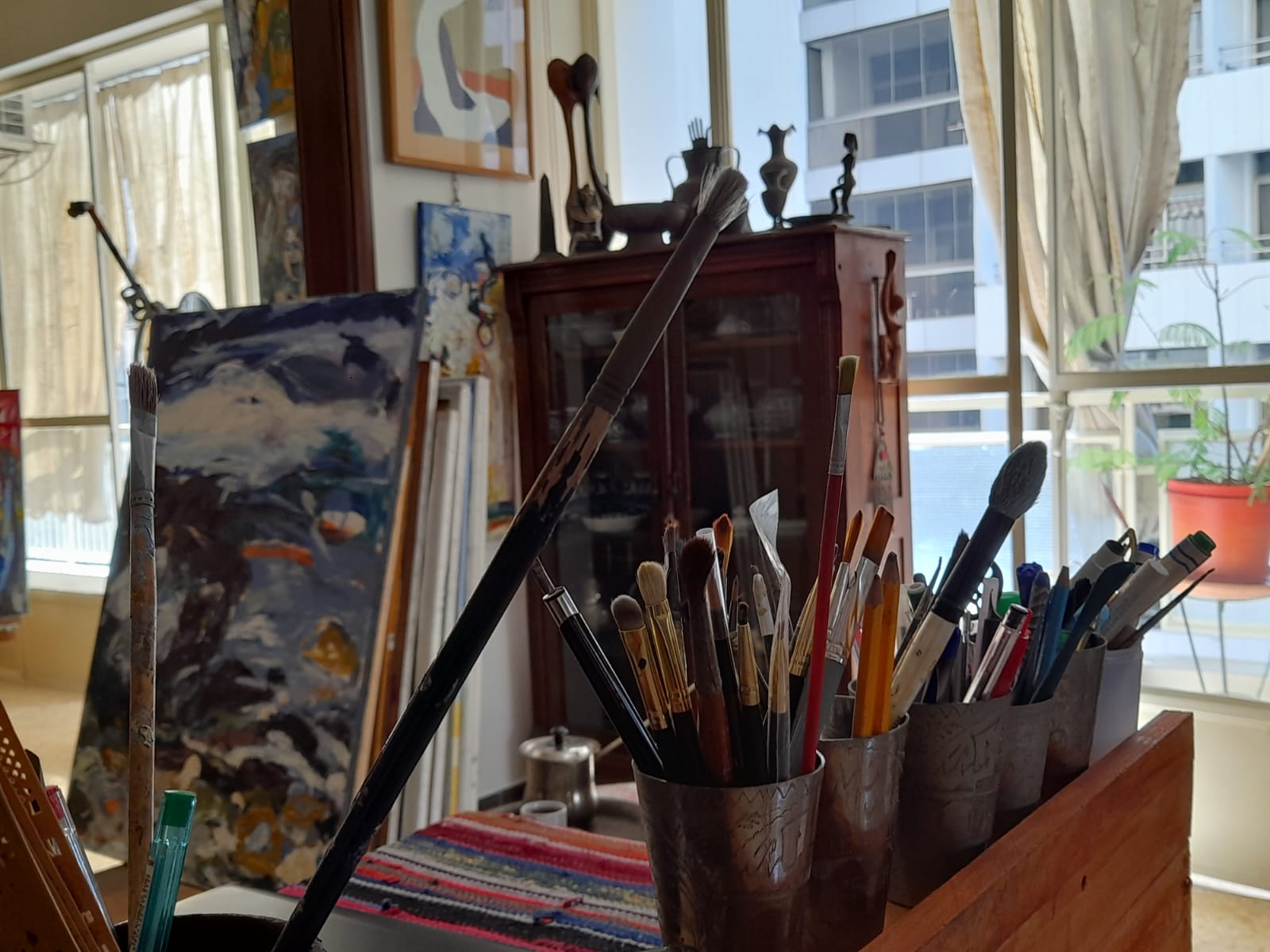 ان محترف وبيت سهى ينطق بمدى احساس الفنانة بمعايشة الفن عبر عقود من الزمن.