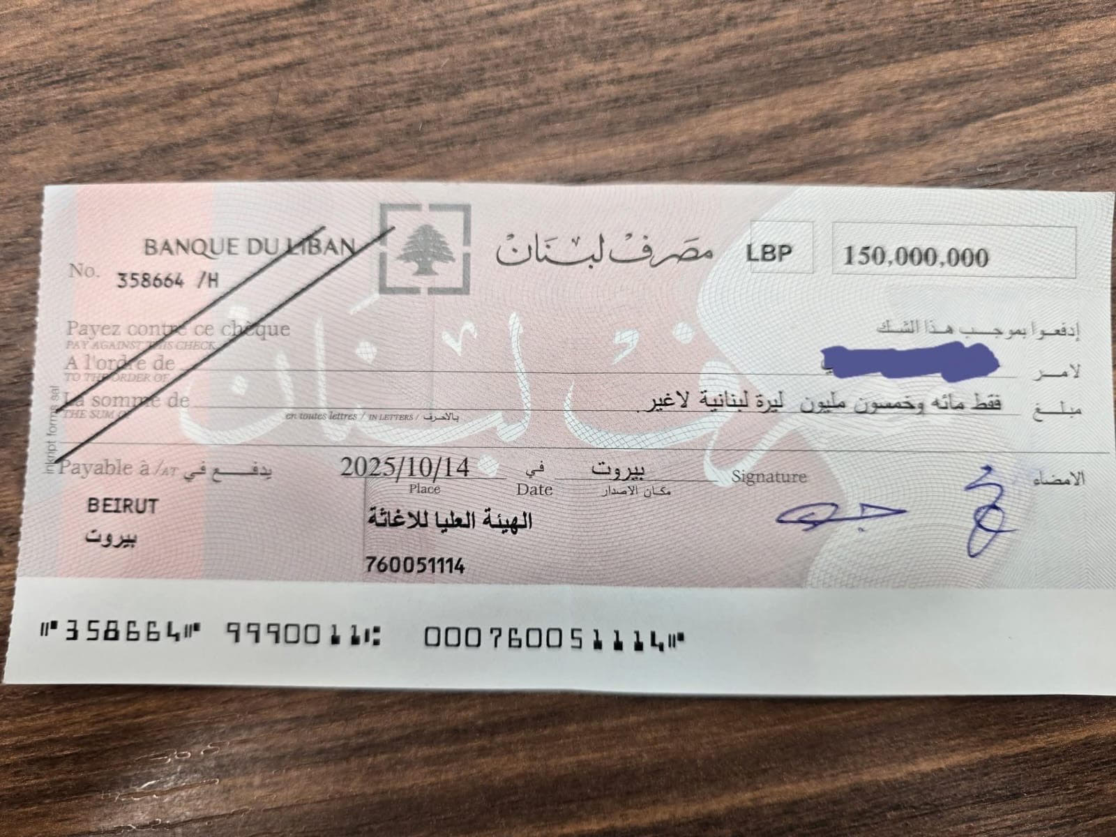 بعد أن أصدرت الهيئة العليا للإغاثة شيكًا مصرفيًا لصالح أحد المتضررين من الاعتداءات الإسرائيلية — وتبيّن أن الشيك خاص بمتضرّر مقيم في العاصمة..