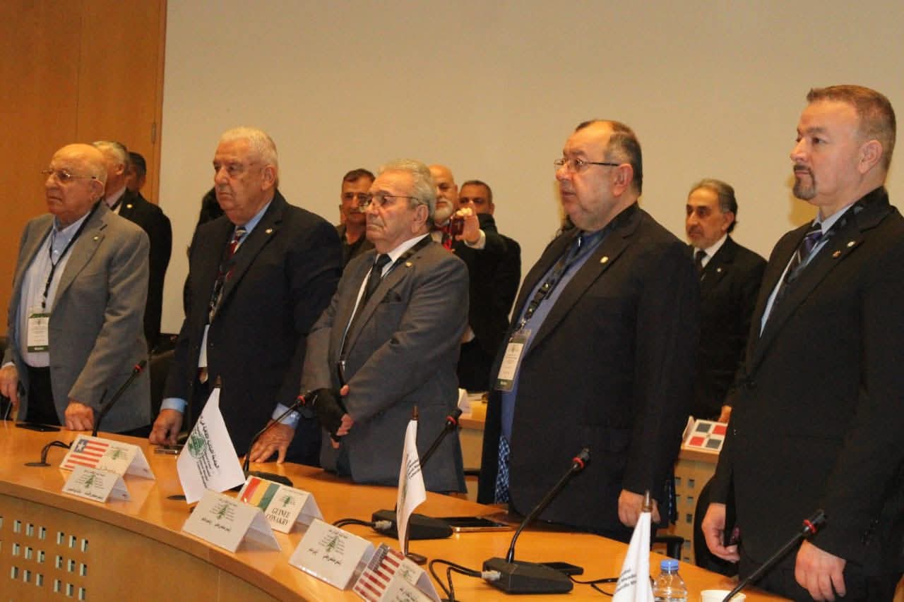 النشيد الوطني بداية، فكلمة الرئيس فواز استهلّها بالوقوف دقيقة صمت وفاء لذكرى "زملاء رحلوا"، وقال:"ست سنوات مرَّت على انتخابنا في المؤتمر العالمي الثامن عشر المنعقد في العام 2019، وتجديد انتخابنا في المؤتما لعالمي التاسع عشر المنعقد في العام 2022، ونحن في الواقع، خلال هذه السنوات، ننتقل على مستوى الوطن من مشكلة إلى أخرى بدءا من الانتفاضات والتظاهرات أواخر العام 2019، والتي تلاها انتشار وباء الكورونا، وبعدها الانفجار الكارثي لمرفأ بيروت، إضافة إلى التوترات الأمنية التي يفتعلها العدو الإسرائيلي وحروبه على بلدنا العزيز، لا سيما في الجنوب والبقاع.