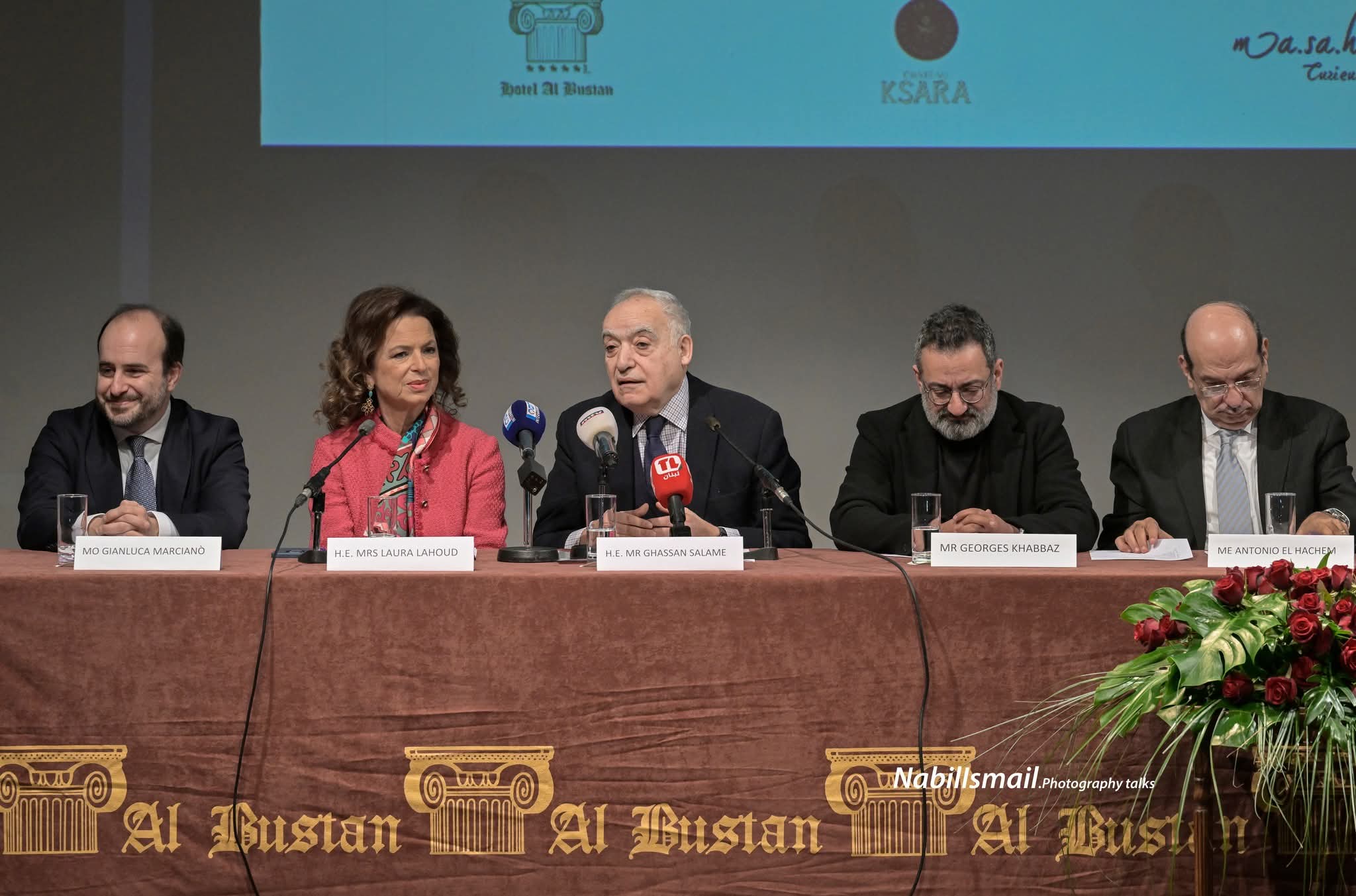 إلى جانب وزير الثقافة غسان سلامة وأعضاء لجنة المهرجان، حضرت في القاعة مؤسسة الحدث، ميرنا البستاني، التي كرّمتها ابنتها لورا بتحية وابتسامة حب، كما ذكرت خلال المؤتمر.