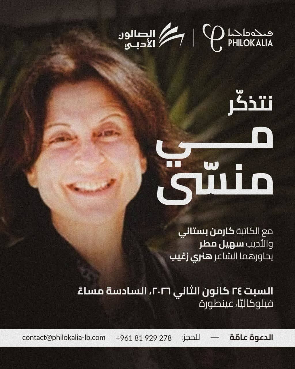 فيلوكاليَّا"تتذكَّر مي منسى في الذكرى السابعة (2019-2026) لغياب الكاتبة والصحافية مي منسَّى، عقَدَ "صالون فيلوكاليَّا الأَدبي" (دير الزيارة – عينطورة، كسروان) ندوةً خاصة عنها، مستضيفًا الدكتورة كارمن البستاني والأَديب سهيل مطر، حاورَهما مدير "الصالون" الشاعر هنري زغيب.