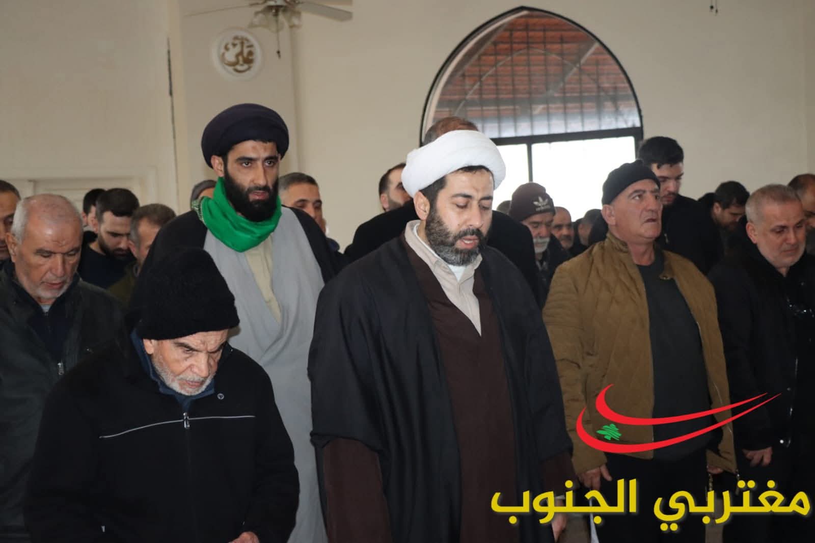 انطلق موكب التشييع من امام منزل صهرها وصولاً الى حسينية الزهراء عليها السلام حيث ام الشيخ الصلاة على جثمانها الطاهر قبل ان توارى الثرى ثم تقبلت عائلة الفقيدة العزاء من المشيعين.