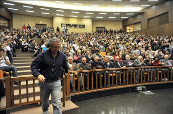 إشارات كهذه، التي يشتهر بها «العربي الغاضب» عادة، كانت تلقى تأييداً من جمهور بدا واضحاً أنه لا يقلّ غضباً عن المحاضر نفسه.