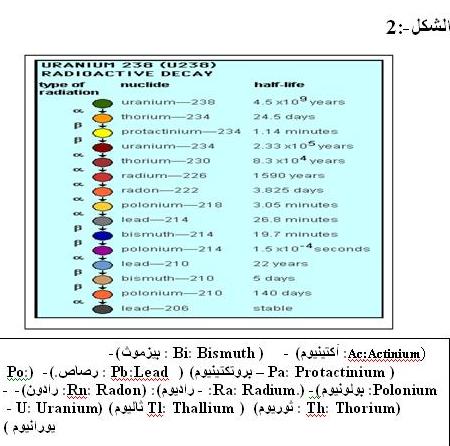 غاز الرادون، البروتكتينيوم، والثوريوم والتي كلها مواد سامة(راجع الجدول المرفق في الشكل-2 )