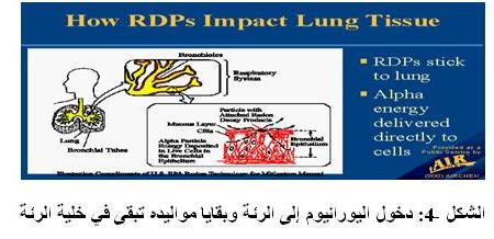 إن عنصر الرادون هذا له القدرة على اختراق طبقات الأرض, داخلاً إلى البيوت السكنية بشكل دائم، و ليدخل بذلك إلى رئة الإنسان عن طريق التنفس, حيث تقصف إشعاعاته خلايا الرئة وتدمرها، مسببة بذلك نشوء التورم السرطاني في هذا العضو الحيوي للإنسان. ( راجع الشكل-3و4 المرفقين، حيث يبينان طريق الرادون إلى السكن و الرئة).