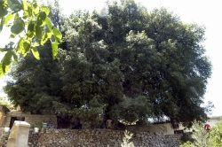 سنديانة شبعا تجاوز عمرها 500 أو 600 سنة، وتحولت بعض أغصانها إلى نحوت معلقة على الجذع الأم، المحاط بالصخر.