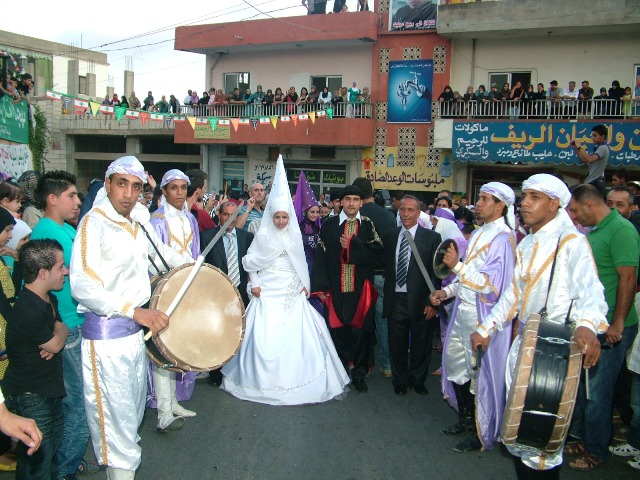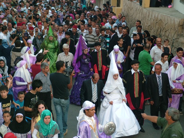 وعلى وقع الزغاريد والطبل ونثر الورود ,زف العرسان علي الخنسا وتهاني سبيتي. أمين قميحة وفاطمة رعد. محمد قميحة وزهراء منتش ، بعرس قروي انطلق من ساحة البلدة حيث ارتدي العرسان الزي التراثي العباءة السوداء المرقطة بالأحمر والكوفية، فيما إرتدت العروسات تهاني وفاطمة وزهراء فساتين بيضاء وببفسجي وأخضر ومعهم الطرطور اللبناني.