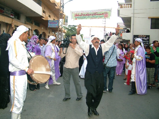 وتآلق العرس برقصة السيف والترس التي تقدمت موكب العرسان الذين زفوا سيرا على الأقدام في أزقة البلدة،وخلفهم سار فاعليات البلدة بزيهم القروي ثم الرجال والشباب فالنساء، وما أن وصل الموكب الى باحة المدرسة حتى عقدت حلقات الدبكة على عزف الناي والمجوز ليختتم المهرجان بعشاء قروي تخلله أكلات التراث من الرشتاية الى المجدرة وكوسا بلبن والبقلة وغيرها وشارك الاهالي كلهم في تذوق الاكلات التراثية.